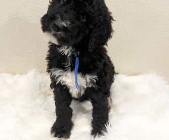Our Beagle puppies include black tan and bluetick, brown and white, black, and lemon and white. Bernedoodle puppies are black and white. Goldendoodle puppies include cream and apricot. Colors will vary depending on the parent dogs.