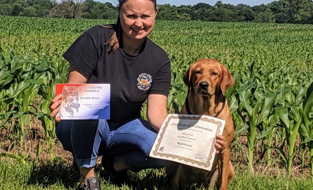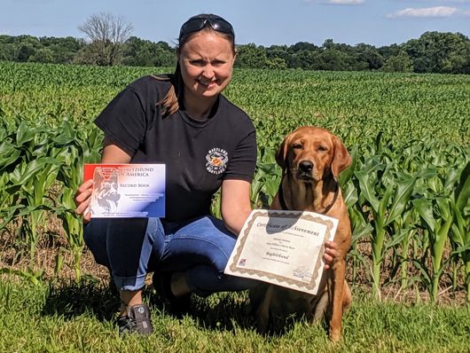 Missy is a high drive female and extremely willing to please. This girl loves to work no matter what event we are doing she always gives 110%. She can go from Scent Work to Conformation Showing without skipping a beat. We recently started Dock Diving. This Sport is truly addictive and SHE LOVES it. She will put her game face on and do her job. She also has a good "Off" Switch. She can come home and hang out with her family and turn into the Lovable Labrador we all Love!