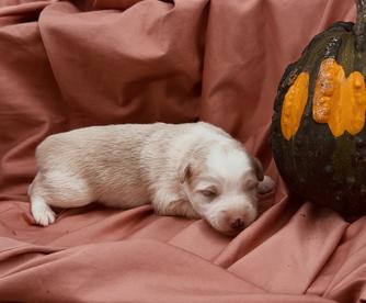 Piper is the resident love bug! She likes everyone she meets and loves attention. She is a devoted companion to me and is almost always by my side no matter where I'm at on the farm. She produces the most beautiful (rare color) yellow puppies!