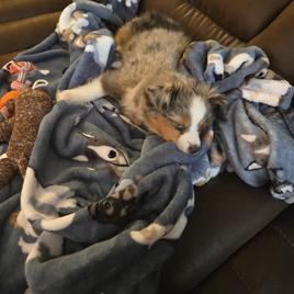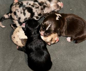 I'm Stephanie C., the breeder behind Deep River Aussies located in Randleman, NC. Our Aussies live in our home and are pets first! Puppies are raised right in my kitchen, and first vaccine is done at the vet. Goodie bag with food, blanket, toy, and book. Puppies use a litterbox but easily transition to going outside. If you have any questions please don’t hesitate to ask!