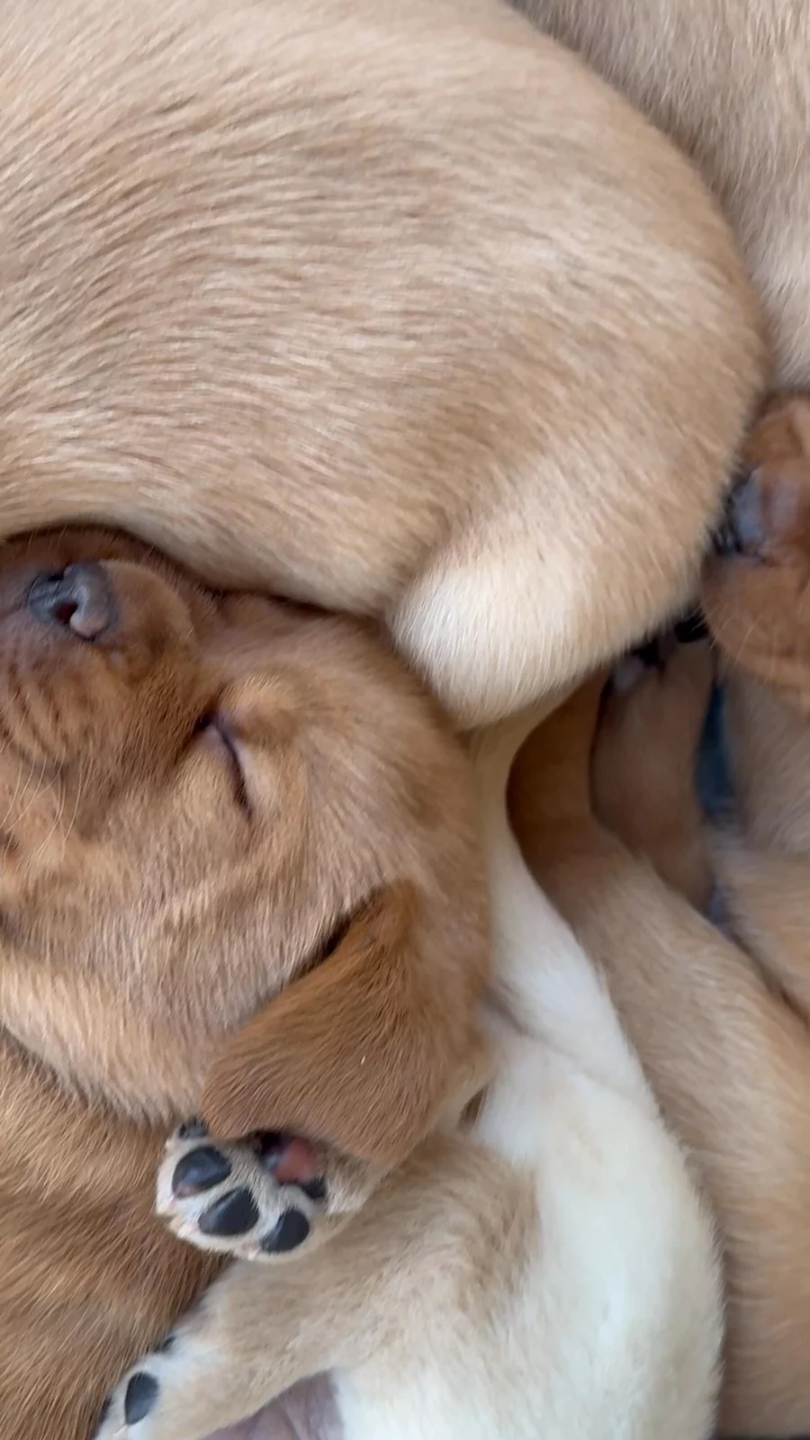 4 weeks old today!! We enjoyed a beautiful day outside yesterday. Playing in the puppy pen and getting some fresh air. Today we are snuggled up listening to the rain. Everyone is over 4lbs and doing awesome 👏.