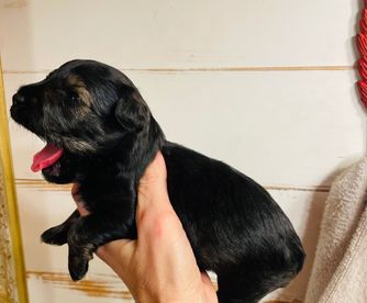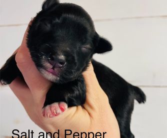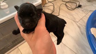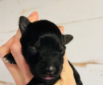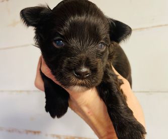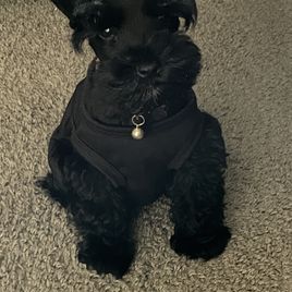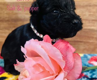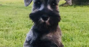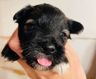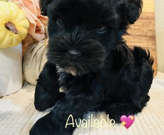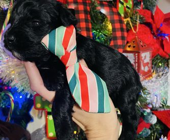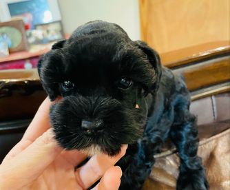 Rhett is an AKC/CKC dual registered solid black toy schnauzer. He is 8lbs of pure sweetness! Rhett loves to run and play. Rhett loves to be held and loves giving and receiving kisses! He is megacoat. Embark health tested and clear!
