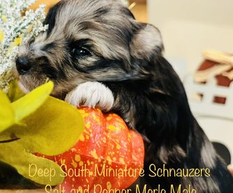I'm Tiffanie H., the breeder behind Deep South Miniature Schnauzers located in Malvern, AR. Our dogs are bred for health, temperament, and intelligence. We strive to produce the best overall pets and companions. The loyalty and loving disposition of this breed are simply the best! We put a great deal of effort into raising our litters to ensure our puppy families will have the best experience raising their new family members.