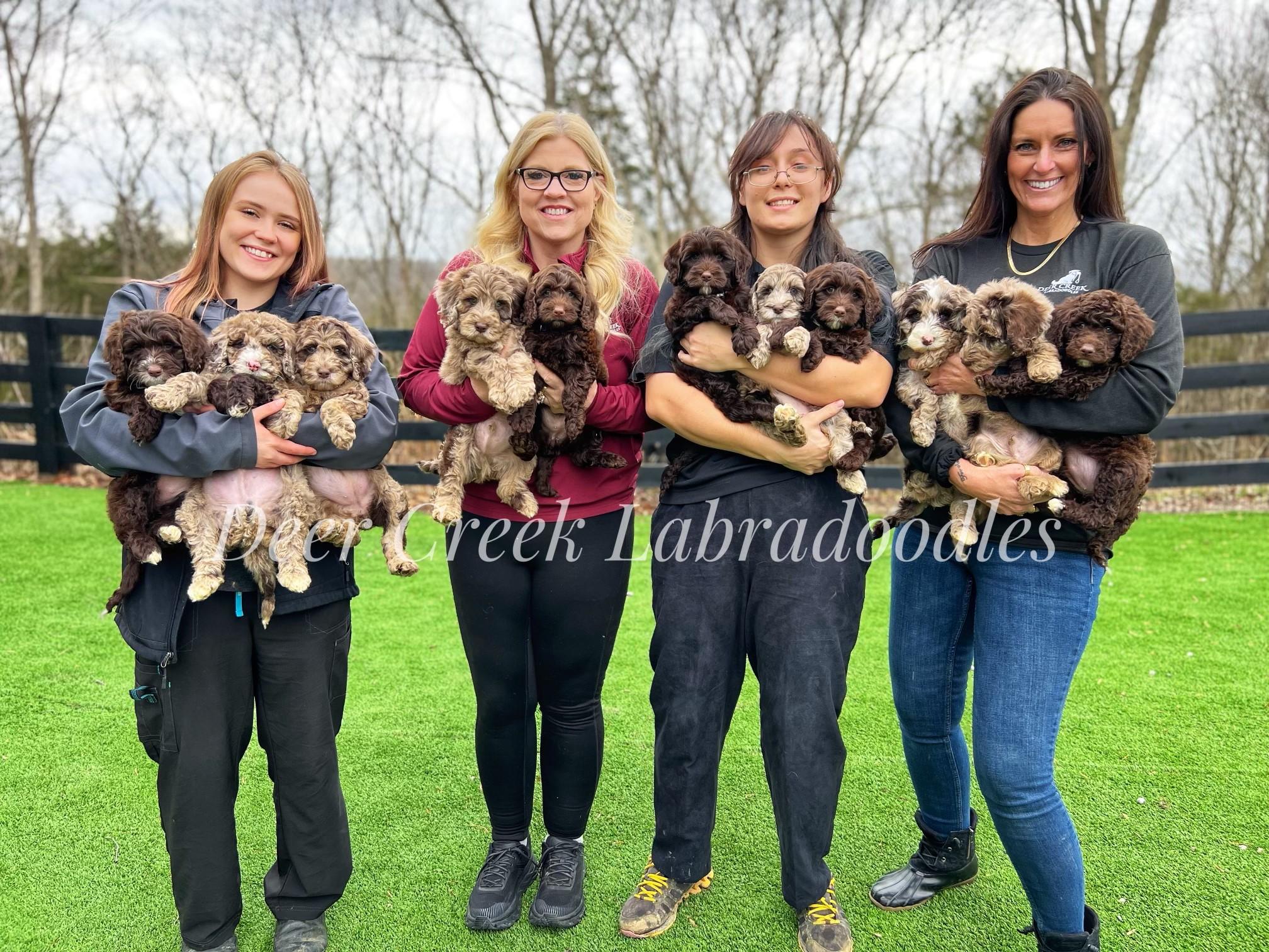 I'm Sandi O., the breeder behind Deer Creek Labradoodles located in Owenton, KY. Deer Creek provides emotional support, therapy and service dogs (fully trained & prospects), CGC dogs and family pets. Our puppies are raised with a service/therapy curriculum and are temperament tested. Deer Creek assists our families with puppy selection to help ensure the best forever home.
