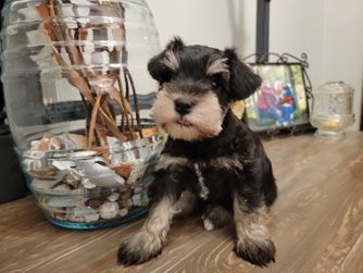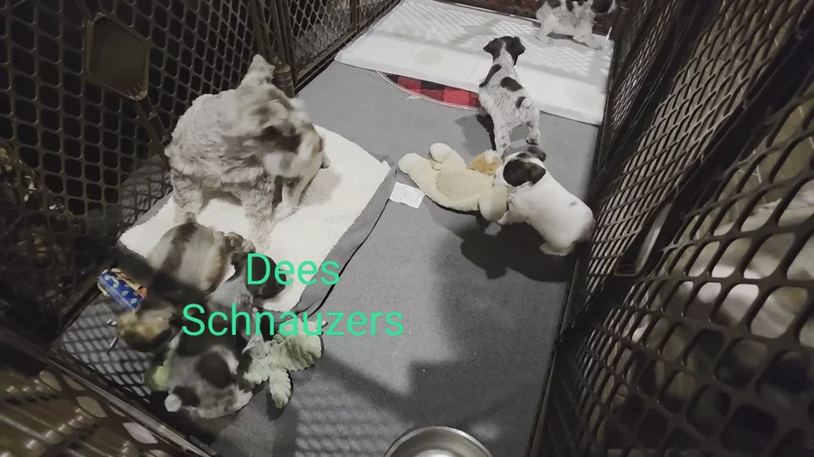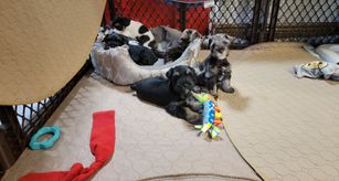 We strive to pour lots of love into our puppies while they are with us. We start teaching simple commands such as sit and come. We not only begin crate training, but we also provide their first crate. We offer future pet sitting if you are local, so your schnauzer does not have to be boarded when you have to travel. I also groom the puppies' multiple times before they go home.