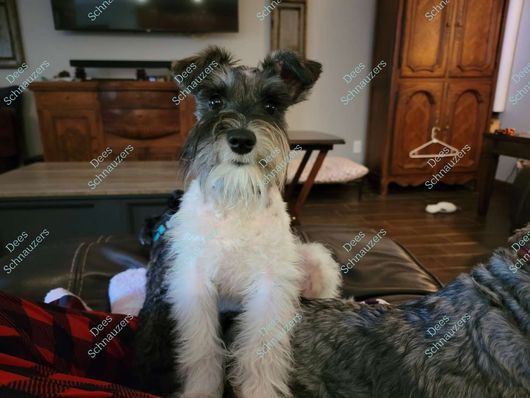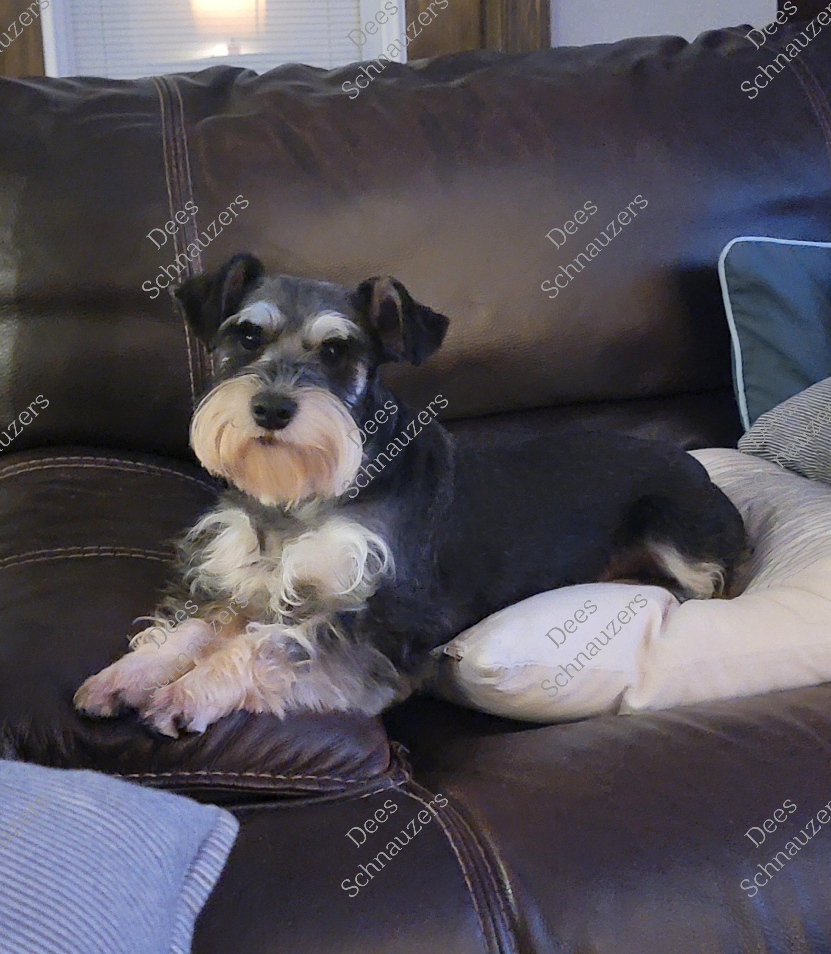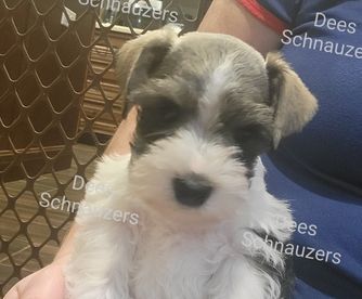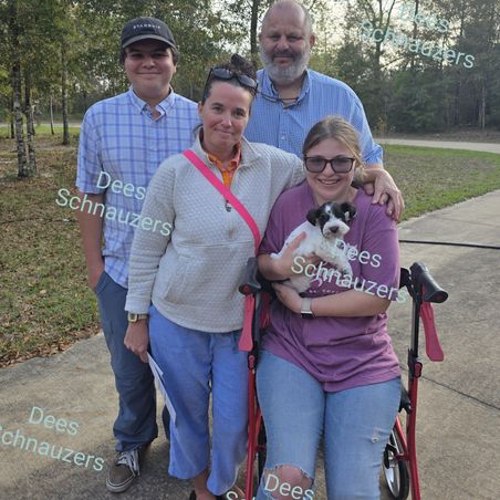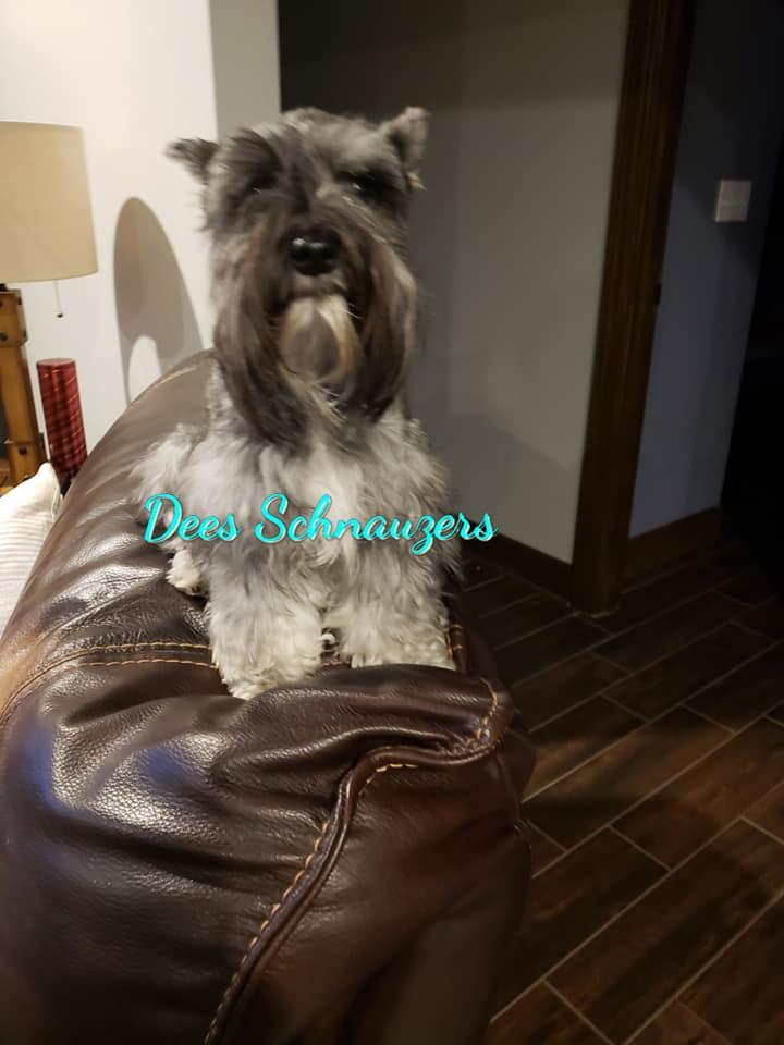 Dealing with Trisha was wonderful. You can tell she has been doing this a long time from the amount of knowledge she has. All of our dealings with Dees Schnauzers have been a 10 out of 10. Before we got to pick up Max We visited him multiple times, the environment at the house was ultra clean And you can tell they really love all of the dogs. Since picking up Max, Trisha has been more than helpful with several of our questions and even grooming max for us once. I can't speak highly enough what kind and caring breeders they are.