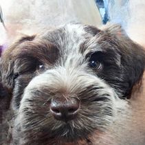 Tobi is a Liver Roan schnauzer. He is a 3rd generation schnauzer from a trusted breeder.