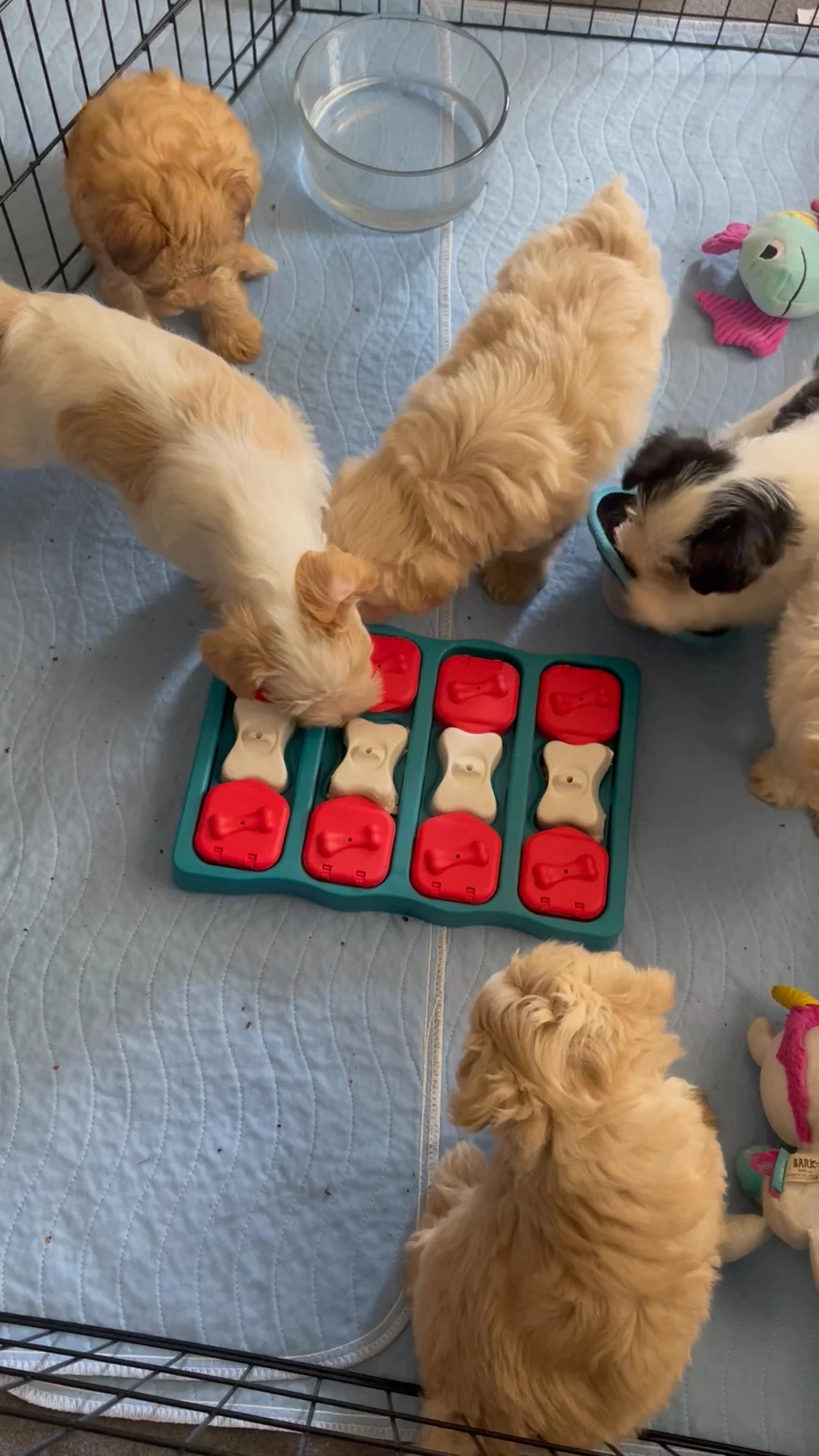 We are a boutique in-home breeder. This creates an intimate atmosphere where our pups are raised as extensions of our family. We perform ENS/ESI, socialize per age appropriate curriculum, intentionally handle and desensitize (various sounds) each pup daily, litter box train and begin crate training. We imprint recall and “load” the "yes!" to optimize later training. Our goal is to provide the very best friend your family has ever had.