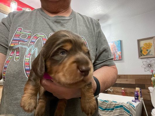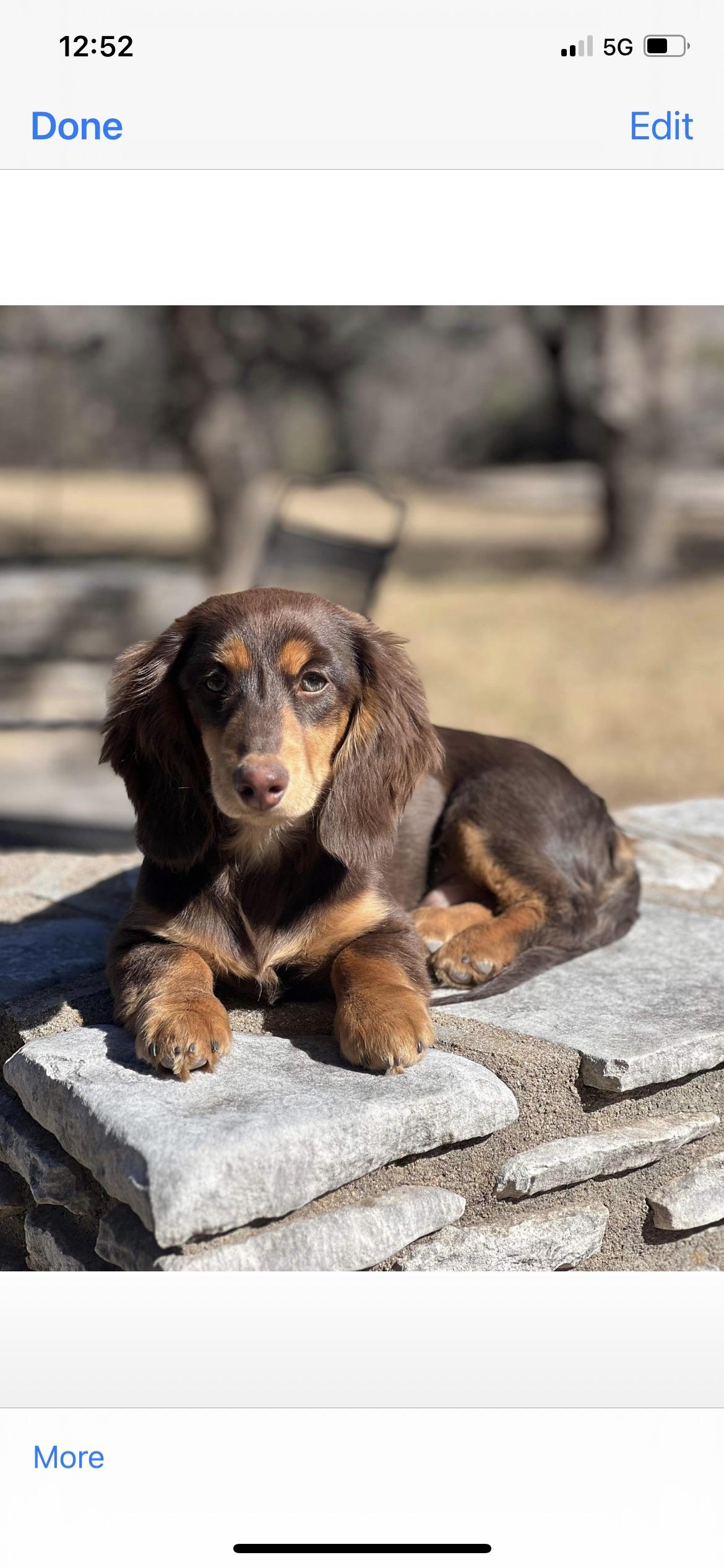 Emmie lou is a female Dachshund. Carefully selected as a great representative of her breed, Cindy decided to make her part of their program. Cindy has passed Good Dog’s screening process, which involved a review of their breeding practices, environment, and the mental and physical health of their dogs.