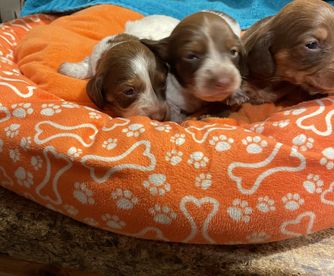 Our puppies are chocolate and tan. Colors will vary depending on the parent dogs.