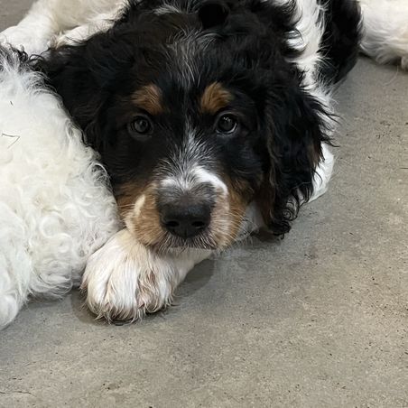 I'm Deidre V., the breeder behind Deidre's Doodles located in Victoria, TX. We offer standard size loving family pets with focus on health and temperament. Sire and Dam are both embark tested. Our babies are 75% bernedoodle and 25% golden doodle. Bernedoodle colors with beautiful doodle curls!