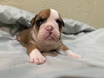 Karen at Dejah Bleu Bulldogs is wonderful. After my family chose what puppy we wanted to join our family; she sent pictures every week so my family could see how he was growing. Karens communication is wonderful and when we did the meet to bring our puppy home her and her husband were even more wonderful in person. We love our English Bulldog. We named him Louis Vuitton. He is amazing!!