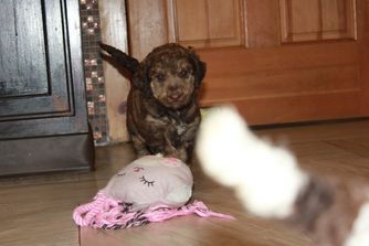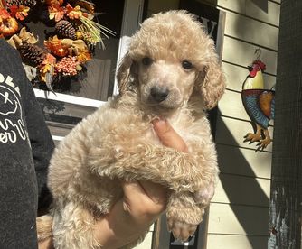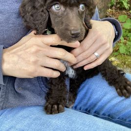 We had a wonderful experience working with Nevaeh. Her communication was excellent—she responded promptly to all of our questions and kept us updated with regular photos and notes about the puppy's progress, which was so reassuring. It’s clear that Nevaeh truly cares about her puppies. She did a fantastic job with early socialization and basic skills, and it shows—our puppy came to us confident, curious, and well-adjusted. Arranging delivery was simple and smooth, and we also appreciated the security of using a trusted site like Good Dog to avoid scams and connect with a responsible breeder. We are absolutely thrilled with our new standard poodle puppy. We named her Hazel, and she is absolutely gorgeous!