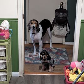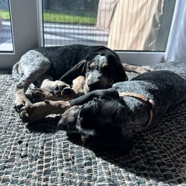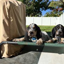 Nevaeh was on top of everything from the moment I first messaged her. She began with updated photos and videos of our little guy, and was prompt with responses to any inquiries I had. She kept in constant contact, some days initiating communication and others answering my contact for the day. She never hesitated to share her knowledge and know-how, and clearly cares for the dogs she breeds and the puppies she sells. 10/10 would recommend her to anyone looking for a Bluetick Coonhound, and 10/10 would return to her a future puppy.