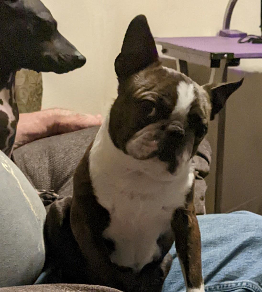 Peter is a male Boston Terrier. Carefully selected as a great representative of his breed, Doreen decided to make him part of their program. Doreen has passed Good Dog’s screening process, which involved a review of their breeding practices, environment, and the mental and physical health of their dogs.