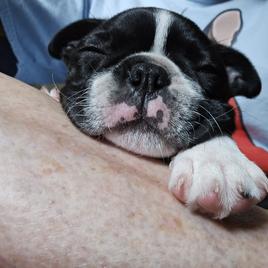 Morgan is a female Boston Terrier. Carefully selected as a great representative of her breed, Joey decided to make her part of their program. Joey has passed Good Dog’s screening process, which involved a review of their breeding practices, environment, and the mental and physical health of their dogs.