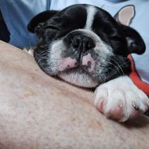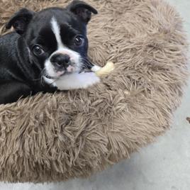 Luna is a female Boston Terrier. Carefully selected as a great representative of her breed, Joey decided to make her part of their program. Joey has passed Good Dog’s screening process, which involved a review of their breeding practices, environment, and the mental and physical health of their dogs.