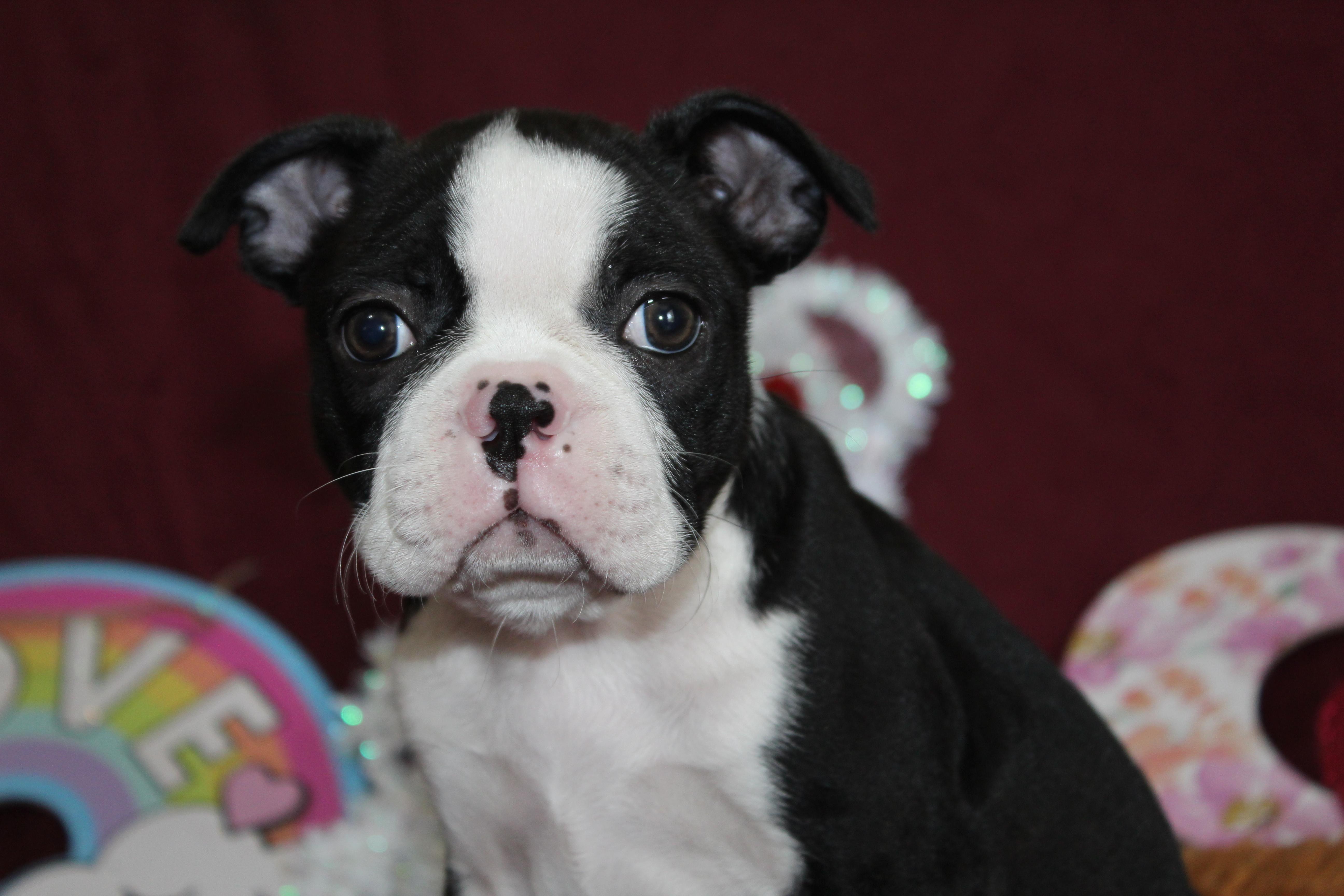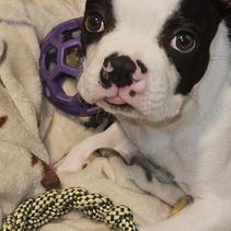 Diana is a female Boston Terrier. Carefully selected as a great representative of her breed, Joey decided to make her part of their program. Joey has passed Good Dog’s screening process, which involved a review of their breeding practices, environment, and the mental and physical health of their dogs.
