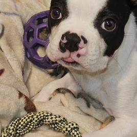 William is a male Boston Terrier. Carefully selected as a great representative of his breed, Joey decided to make him part of their program. Joey has passed Good Dog’s screening process, which involved a review of their breeding practices, environment, and the mental and physical health of their dogs.
