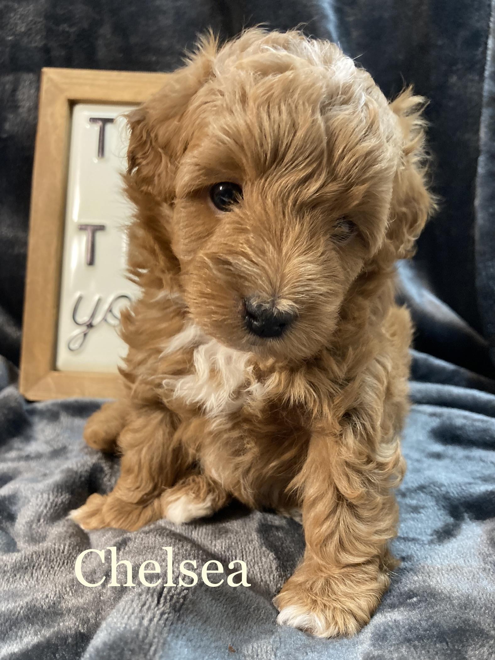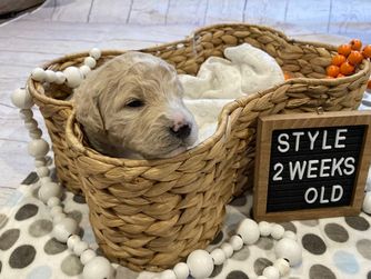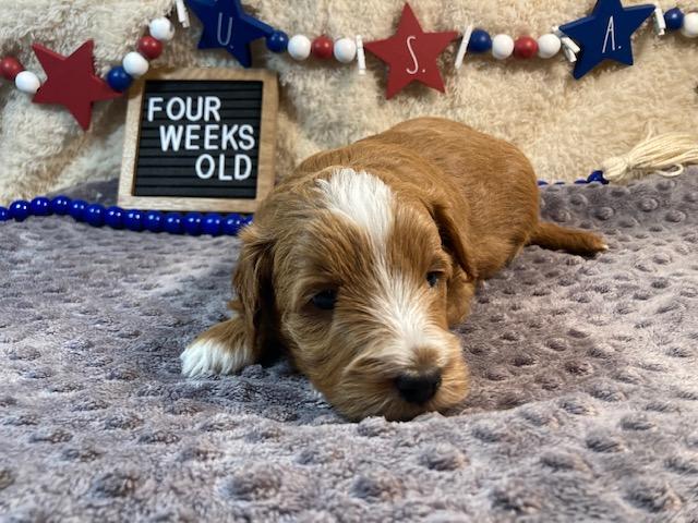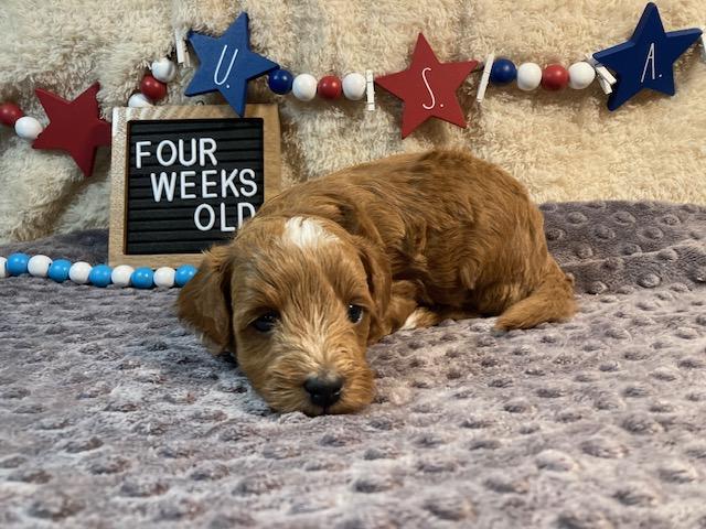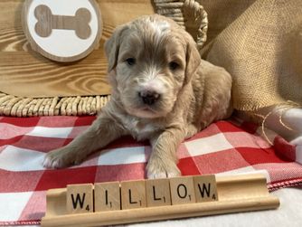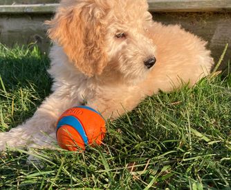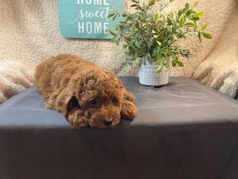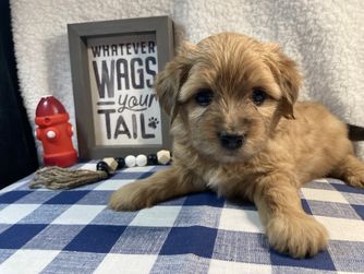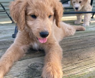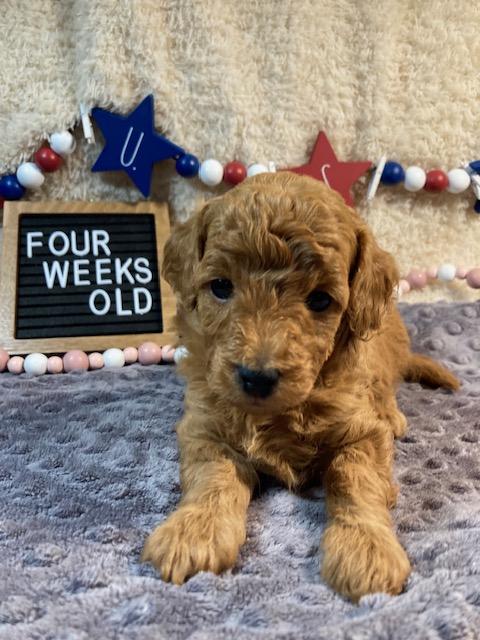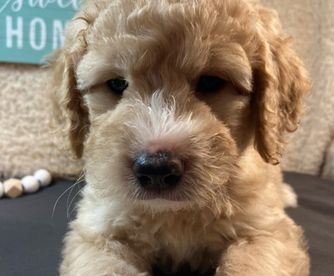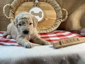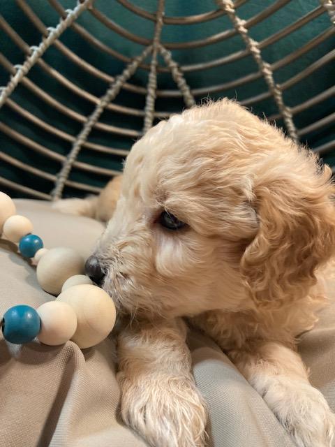 Maggie is a F1 miniature goldendoodle. She is very laid back. Can often be found by my side, following Jamielynn around the house or napping on the couch with Bailey. Maggie loves to go on walks, run in the back yard or sit with you on the couch. We fell in love with Maggie the moment we found her. Her puppies are laid back and have the same gorgeous look and personality that she has.