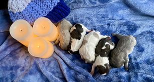 Our puppies include fawn, white and fawn, liver, black and white, brindle and white, and blue. Colors will vary depending on the parent dogs.