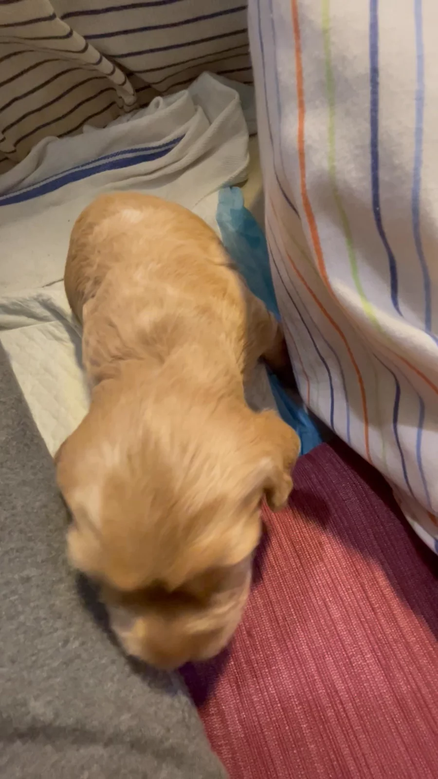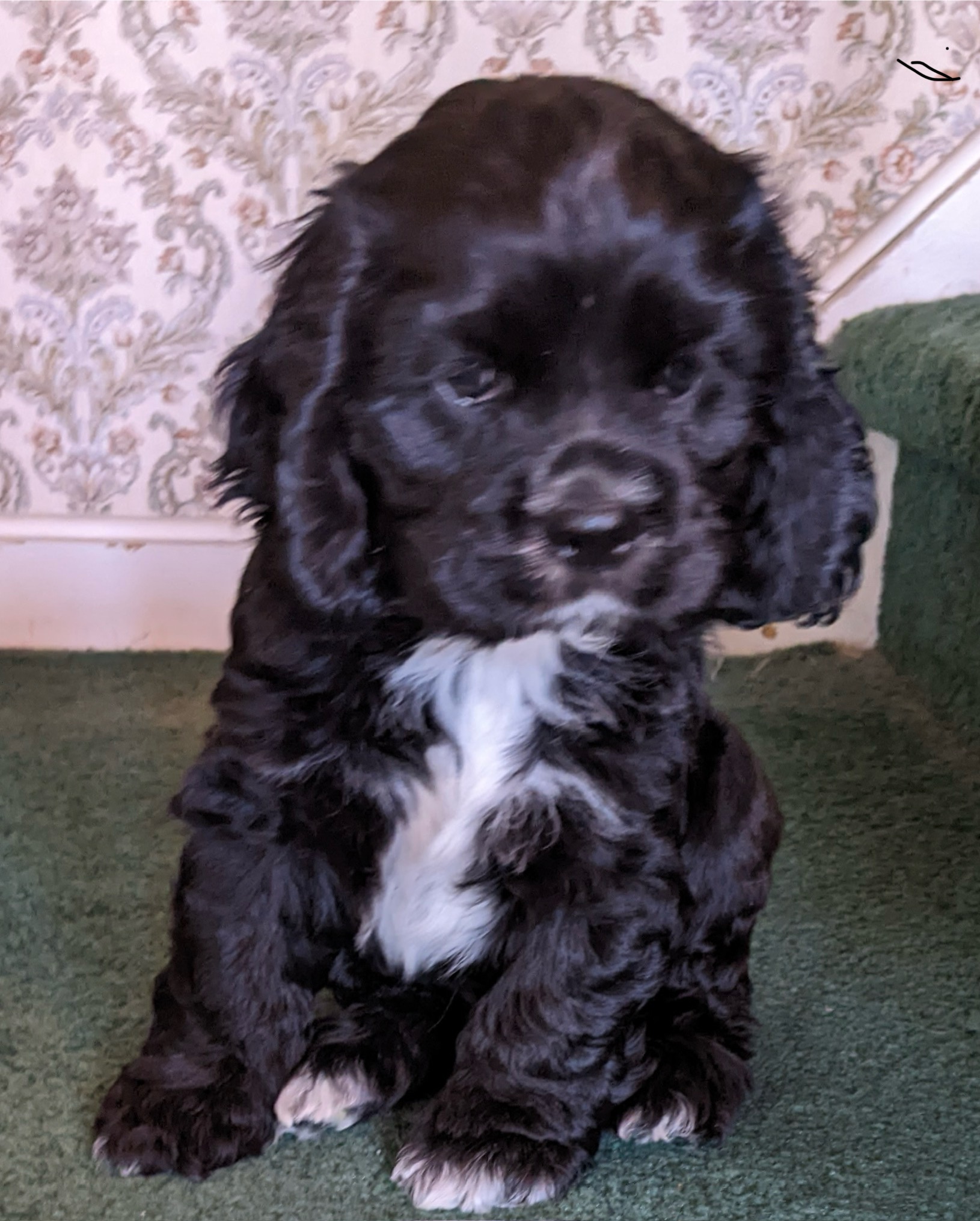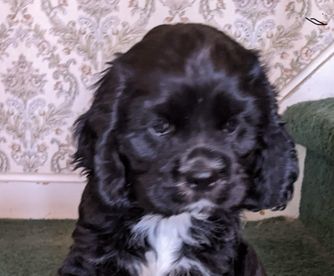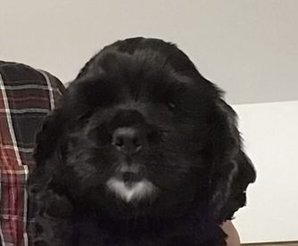Gene is a cute little Black Roan cocker spaniel.. purebred from the champion Crescent Moon cocker spaniels..