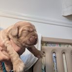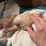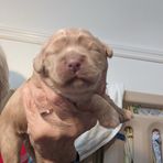 She is a year and a half and this is her first litter.. she is red with some white on her chest..
