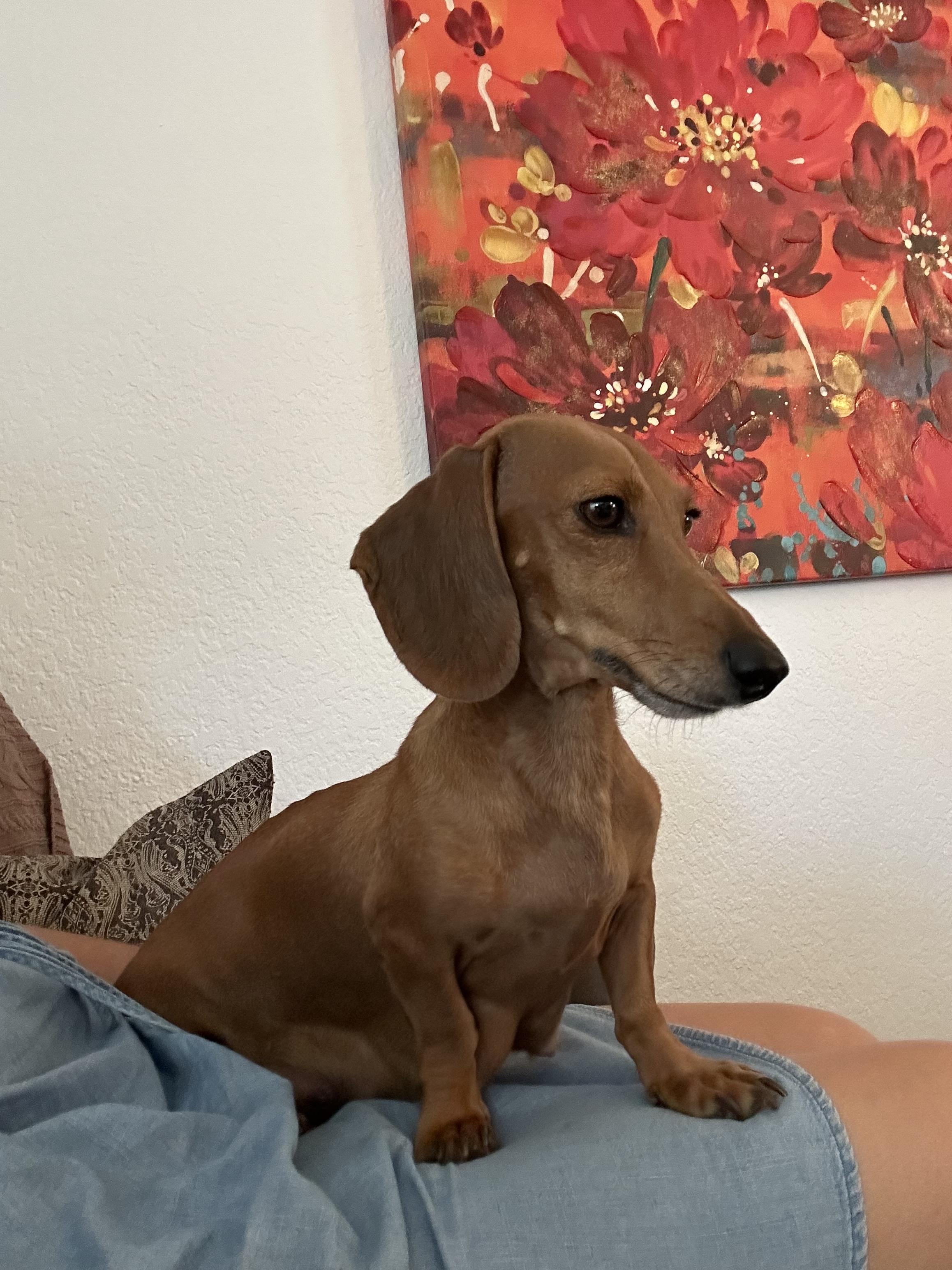 Giovanni is a male Dachshund. Carefully selected as a great representative of his breed, Becky decided to make him part of their program. Becky has passed Good Dog’s screening process, which involved a review of their breeding practices, environment, and the mental and physical health of their dogs.