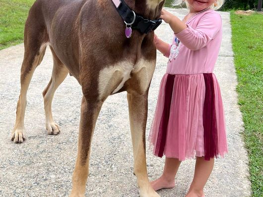 Luna is a female Great Dane. Carefully selected as a great representative of her breed, Anna decided to make her part of their program. Anna has passed Good Dog’s screening process, which involved a review of their breeding practices, environment, and the mental and physical health of their dogs.
