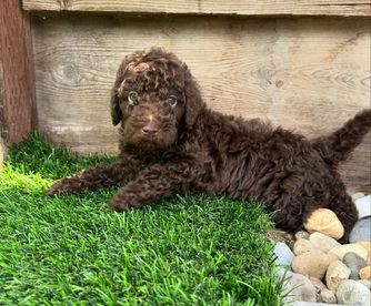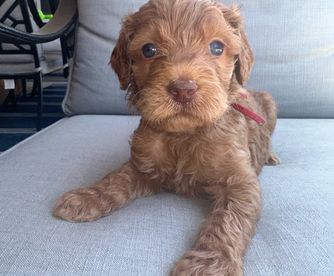 Our Goldendoodle puppies include cream, apricot, red, and chocolate. Colors will vary depending on the parent dogs.