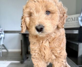 Our Goldendoodle puppies include miniature and medium sizes. Sizes will vary depending on the parent dogs.