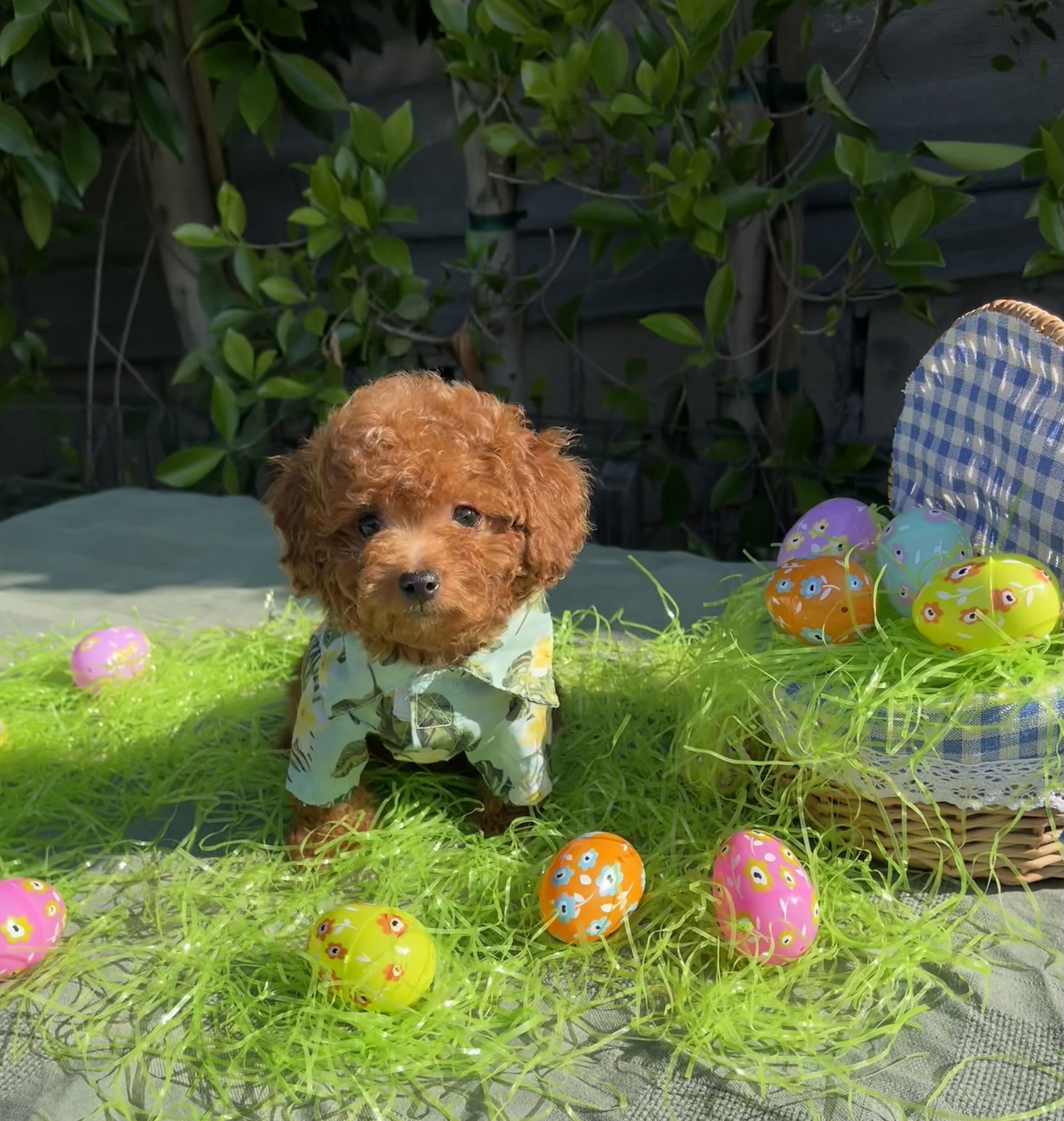 Our puppies are red. Colors will vary depending on the parent dogs.