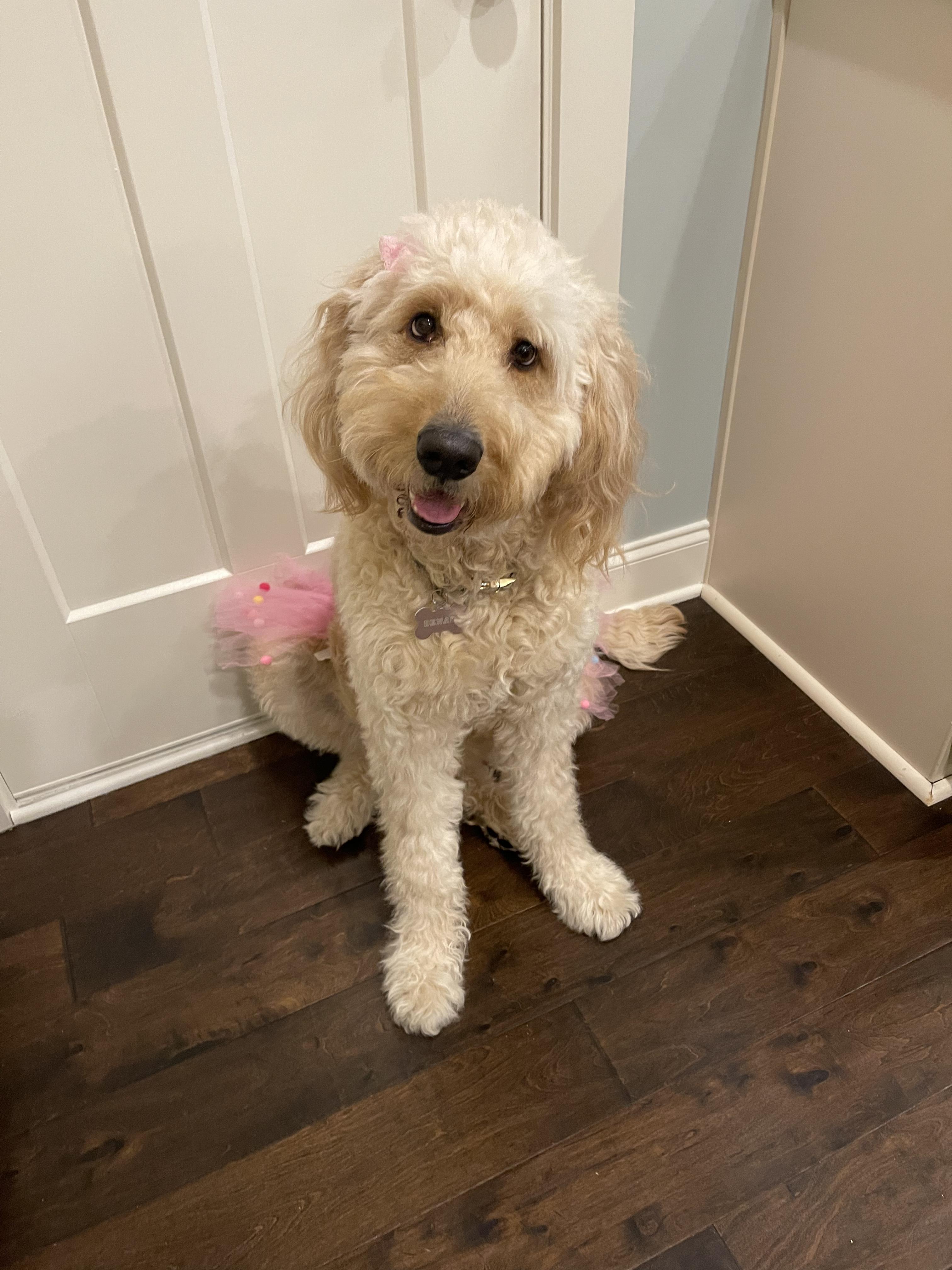 Denali is a female Labradoodle about 5 years old. Carefully selected as a great representative of her breed, Susan decided to make her part of their program. Susan has passed Good Dog’s screening process, which involved a review of their breeding practices, environment, and the mental and physical health of their dogs.