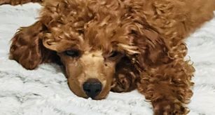 Mari is a apricot parti small mini poodle at under 10". She is my little shadow. Helps me on the ranch even wear her fancy dresses. She has her favorite people for sure but will give into anyone willing to giver her ear scratches and belly rubs. She may be small but she has no fear and rules all the poodles and doodles on the ranch.
