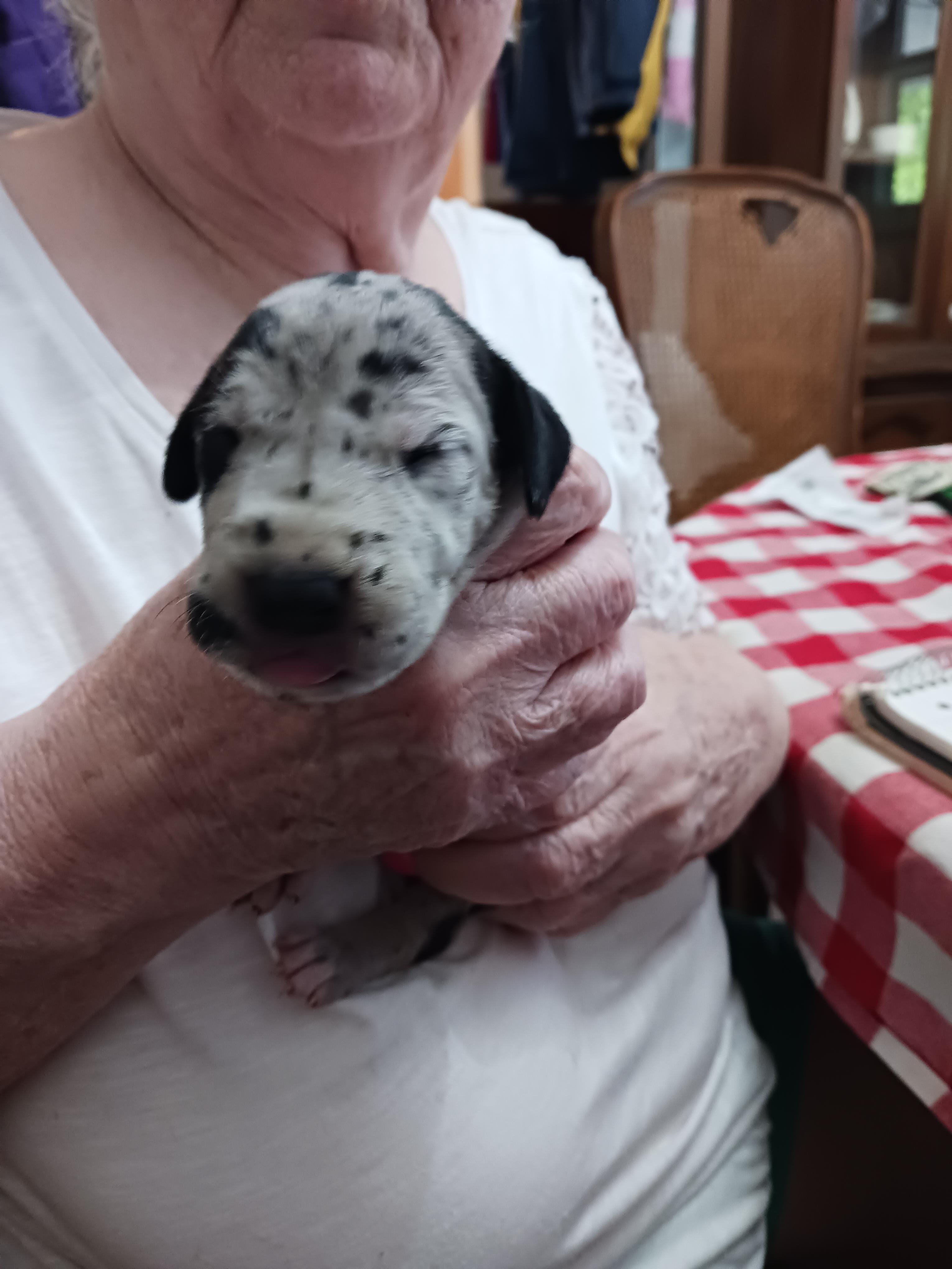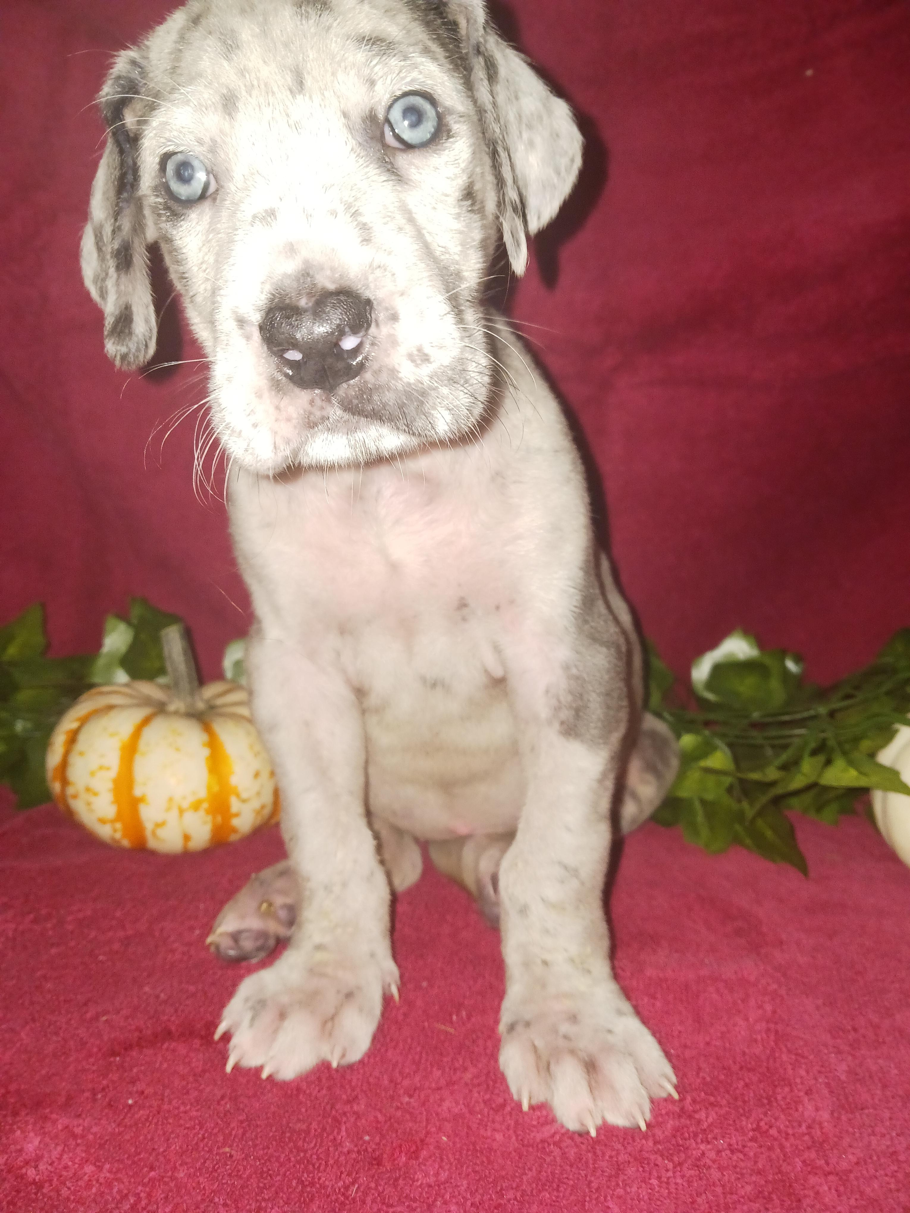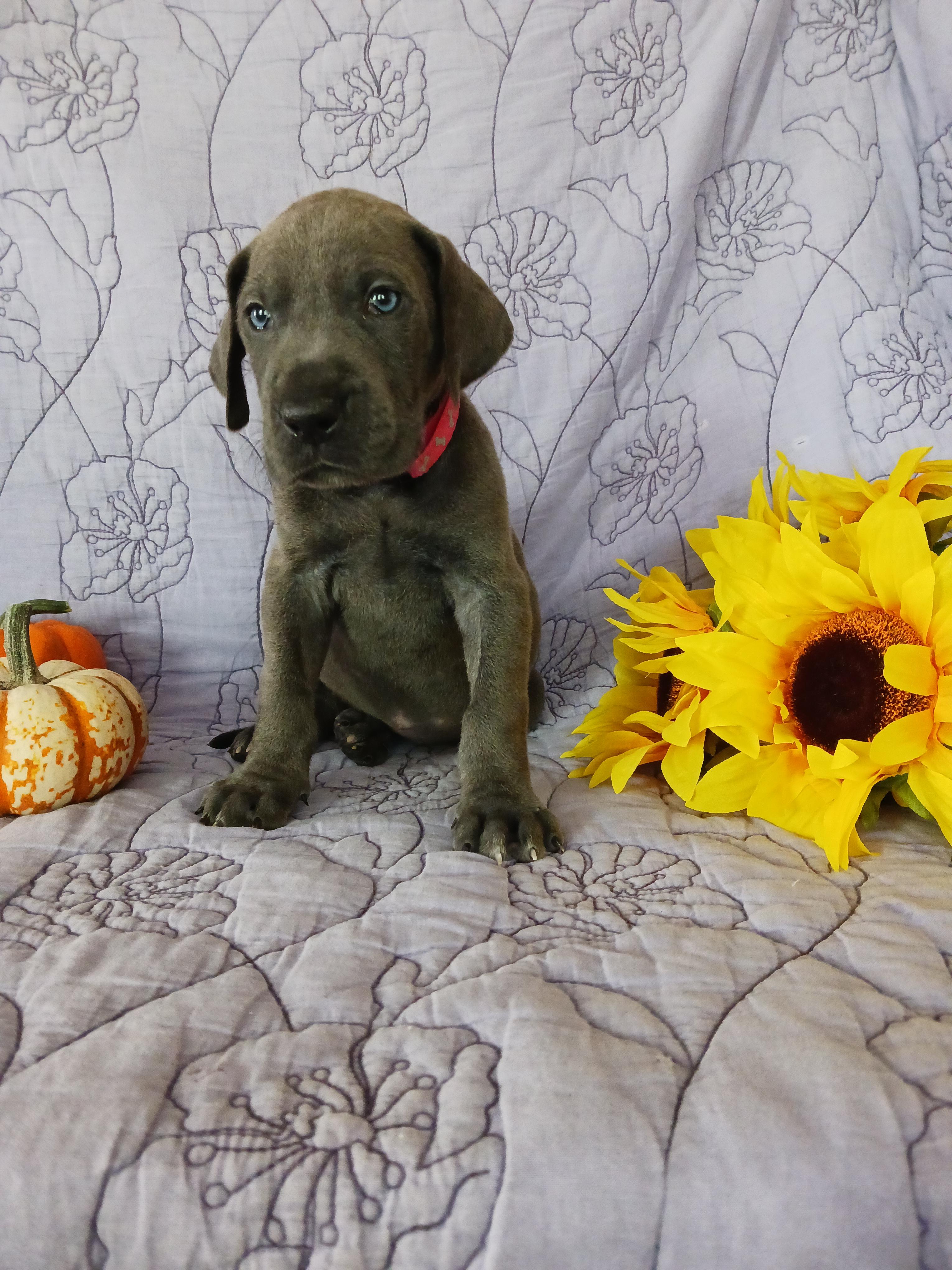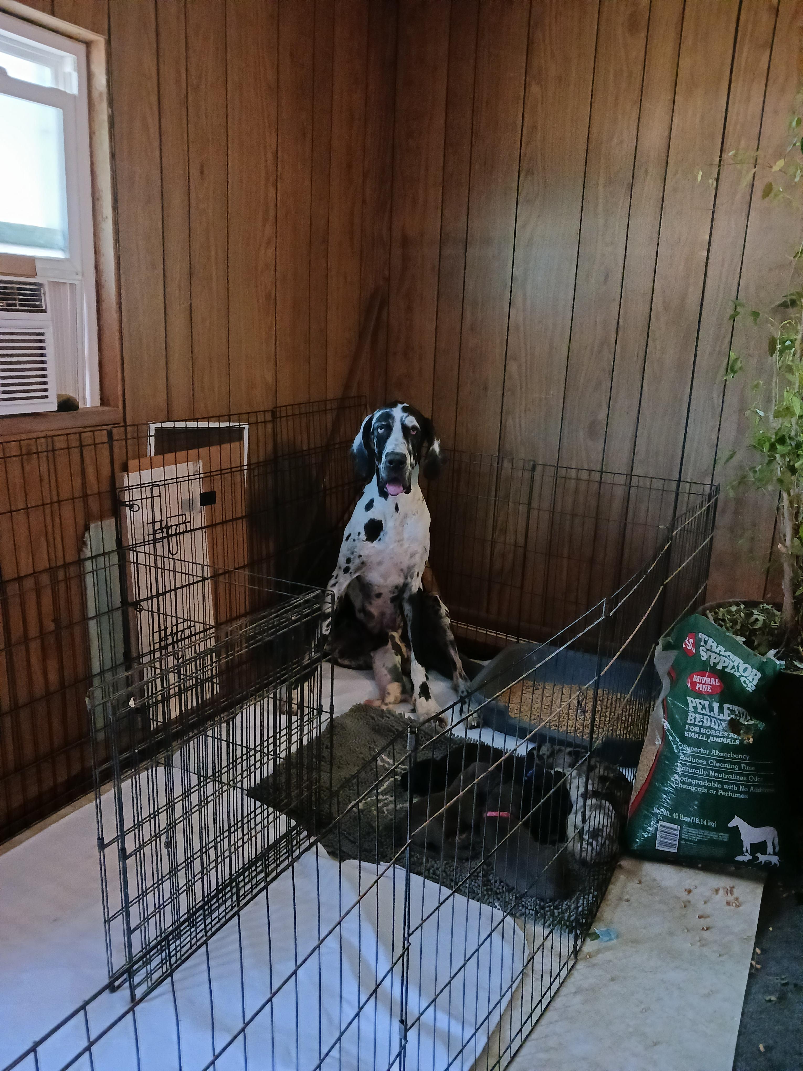 I'm Genile D., the breeder behind Dennison's Danes located in Springfield, MO. My program is built upon a foundation of love, admiration, and respect for the Great Dane breed. My focus is on maintaining their breed standards by raising structurally sound and correct puppies with excellent temperaments. I show all my mommas and daddy's. I do not breed until they are DNA health tested clear, and have at least one Championship. I show in multiple registries including AKC, UKC, ACA, and APRI. It is so fulfilling to have the opportunity to create companionship and love and to see the positive effect that a beloved, furry companion can have on its family! Our puppies are raised in our home, never in a kennel. Our mommas live in the house, sleep with my husband and I. When they whelp I sleep with them, next to the whelping box.