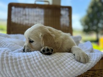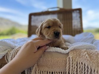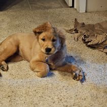 I can’t recommend working with Lauren and Cory enough! They were so great on answering all of my in-depth questions, willing to work through some of my odd requests, and overall just very kind and generous with their time for me and their puppies. From figuring out which litter was going to have parents that suited the personality traits that I was looking for best, to organizing the pick up process and information, it was smooth sailing every step of the way. Glory, my puppy from them from their scout and Molly litter has been an absolute joy so far! She just reached her five month milestone, and is doing so well! Her health is solid, she’s smart and cuddly, and pretty much everything you would want from your golden retriever puppy, even those raptor sharp teeth are pretty cute! They did a great job with temperament testing and matching puppy to house! Would definitely buy another puppy from them in the future!
