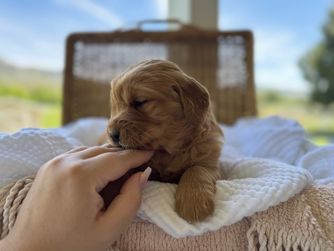 “This includes a comprehensive vet check by our local vet, age appropriate, worming and vaccinations, microchipping, a fully loaded puppy pack, and a very detailed folder with all info. We require a deposit for any puppy to be reserved, of $500. Our deposits are refundable in the rare occasion that we cannot provide a healthy puppy from the litter reserved. They are transferable.”