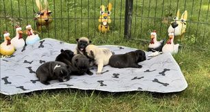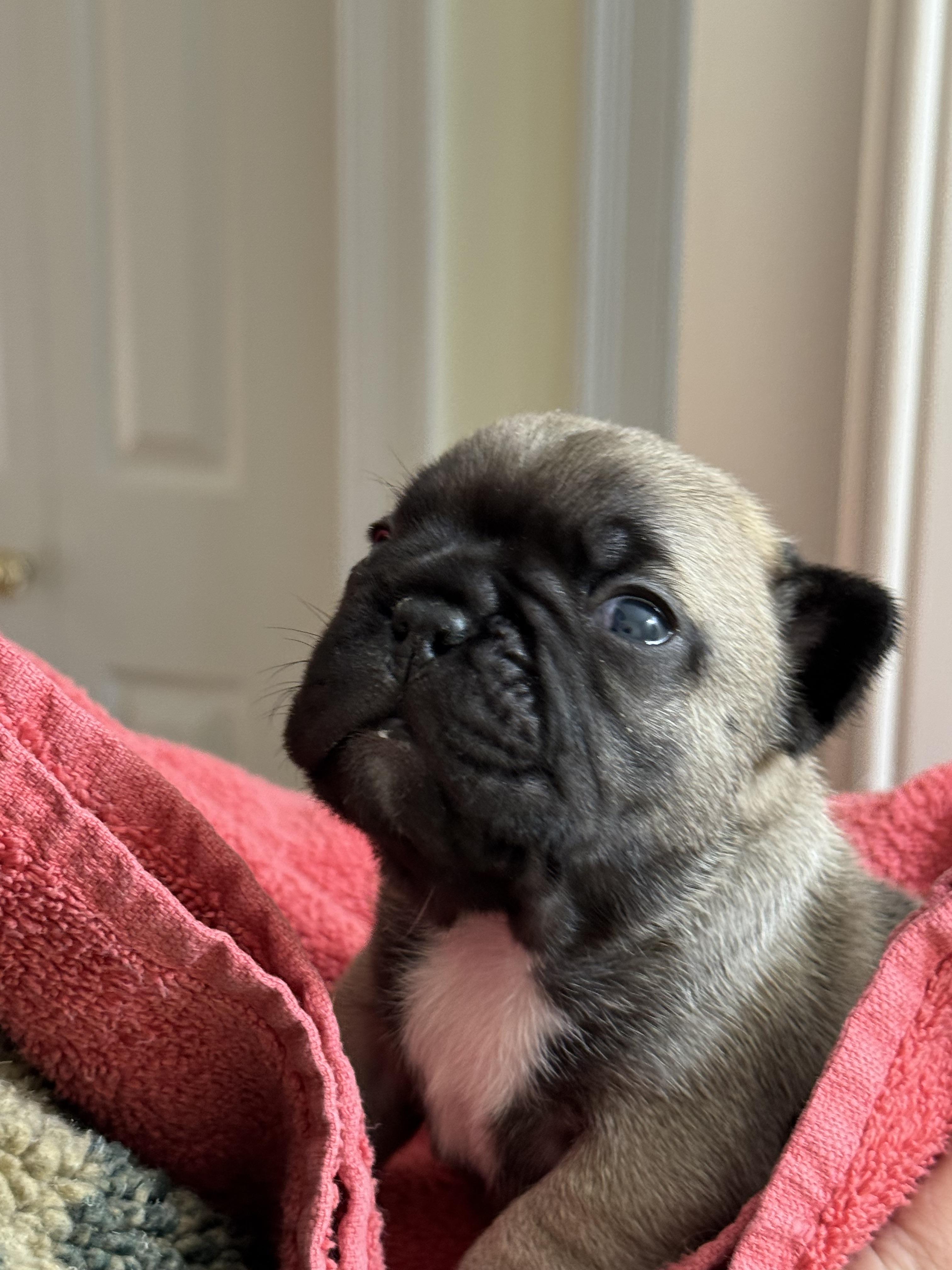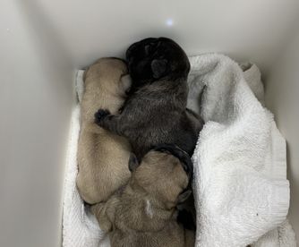 Our puppies include brindle, cream, fawn, white and brindle, fawn brindle and white, brindle and white, fawn and white, blue, white and black, white and fawn, and blue fawn. Colors will vary depending on the parent dogs.