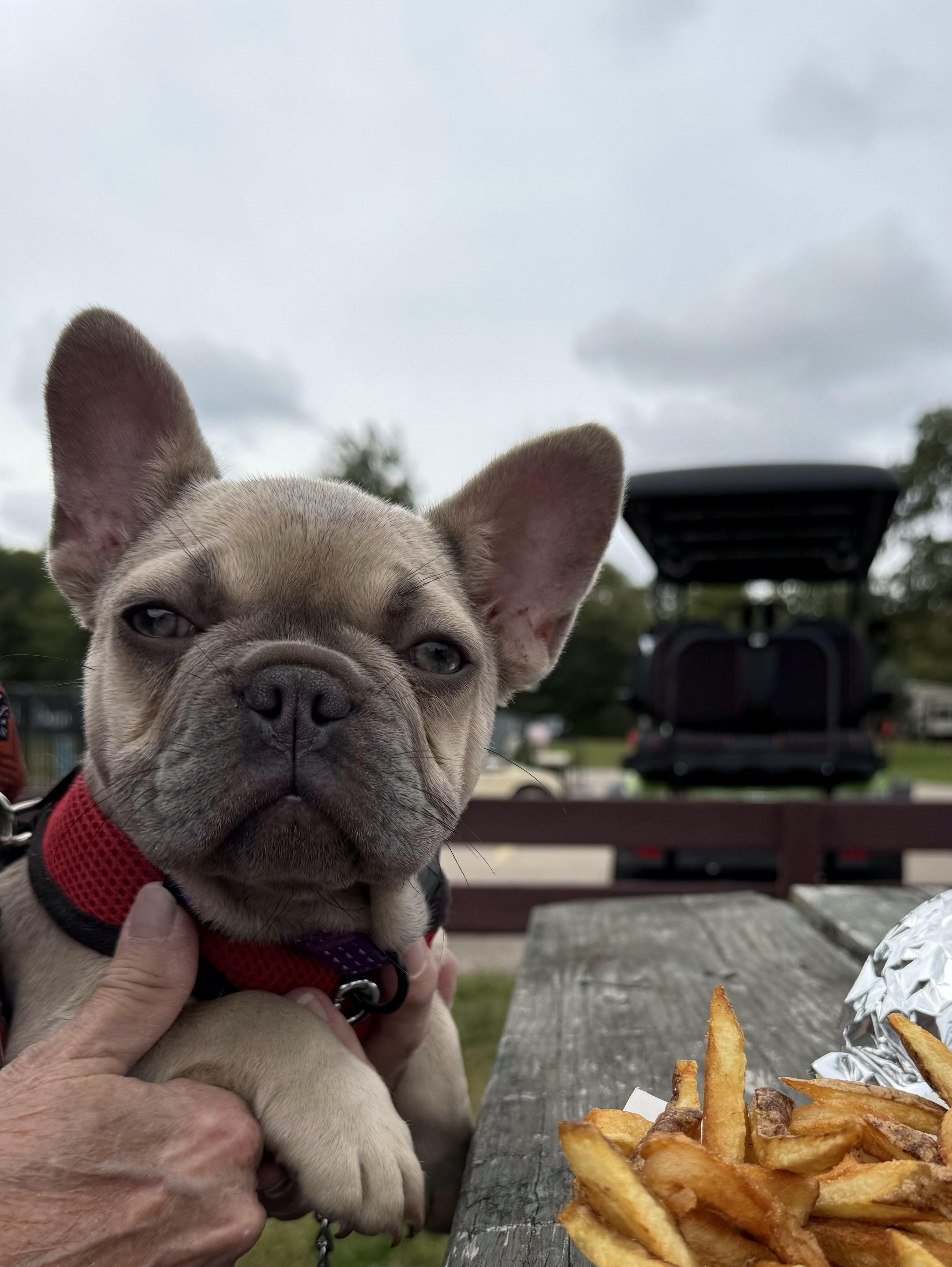 Fern is a female French Bulldog. Carefully selected as a great representative of her breed, Lori decided to make her part of their program. Lori has passed Good Dog’s screening process, which involved a review of their breeding practices, environment, and the mental and physical health of their dogs.