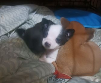 Our puppies include black brown and white and white and black. Colors will vary depending on the parent dogs.