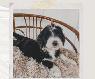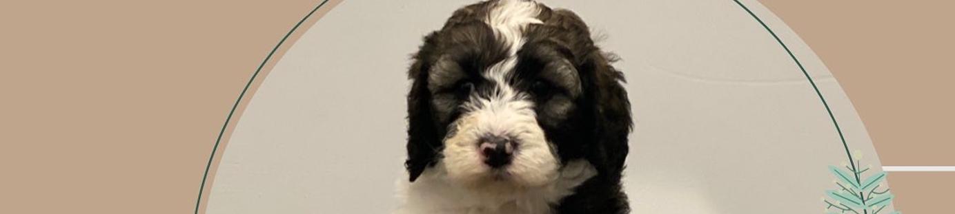 Mae is a female Saint Berdoodle. Carefully selected as a great representative of her breed, Dani decided to make her part of their program. Dani has passed Good Dog’s screening process, which involved a review of their breeding practices, environment, and the mental and physical health of their dogs.
