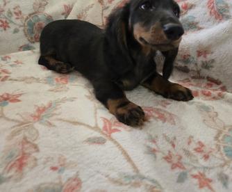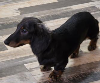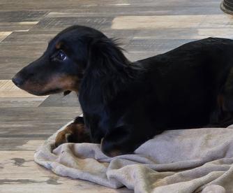 Jasper is a beautiful black and cream silky wirehaired dachshund. Jasper is very smart, playful, and super sweet !