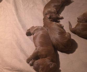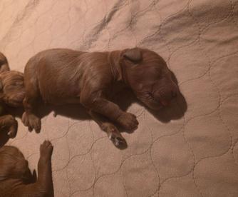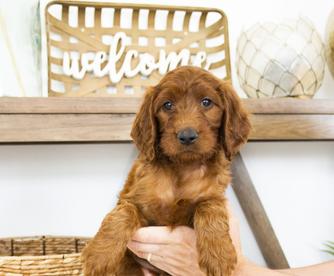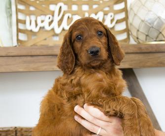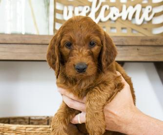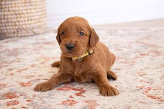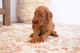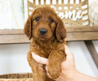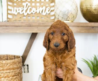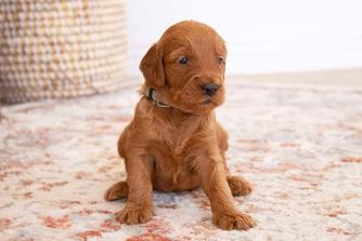 Our Goldendoodle puppies are red. Irish Doodle puppies are red. Poodle puppies are red. Labradoodle puppies include red and apricot. Colors will vary depending on the parent dogs.