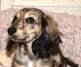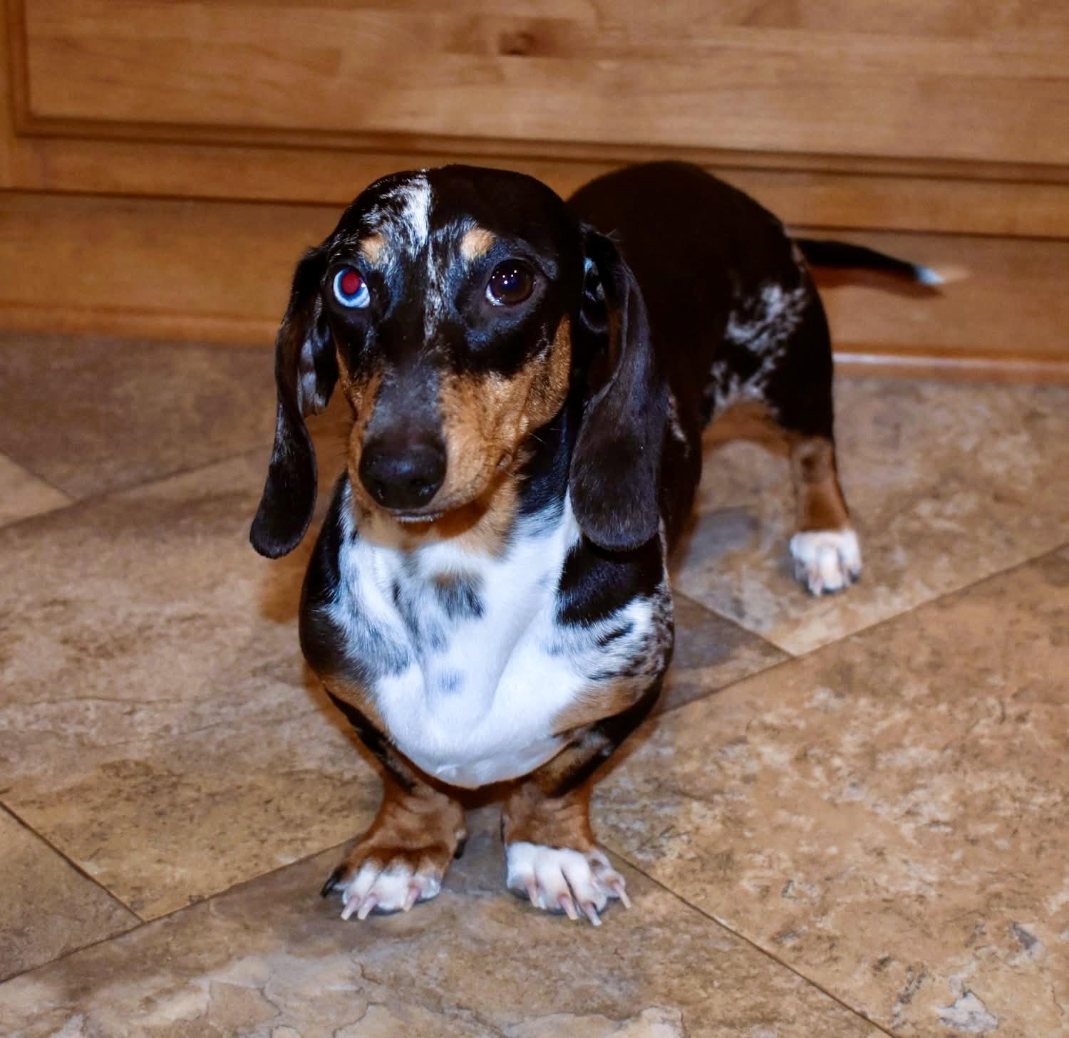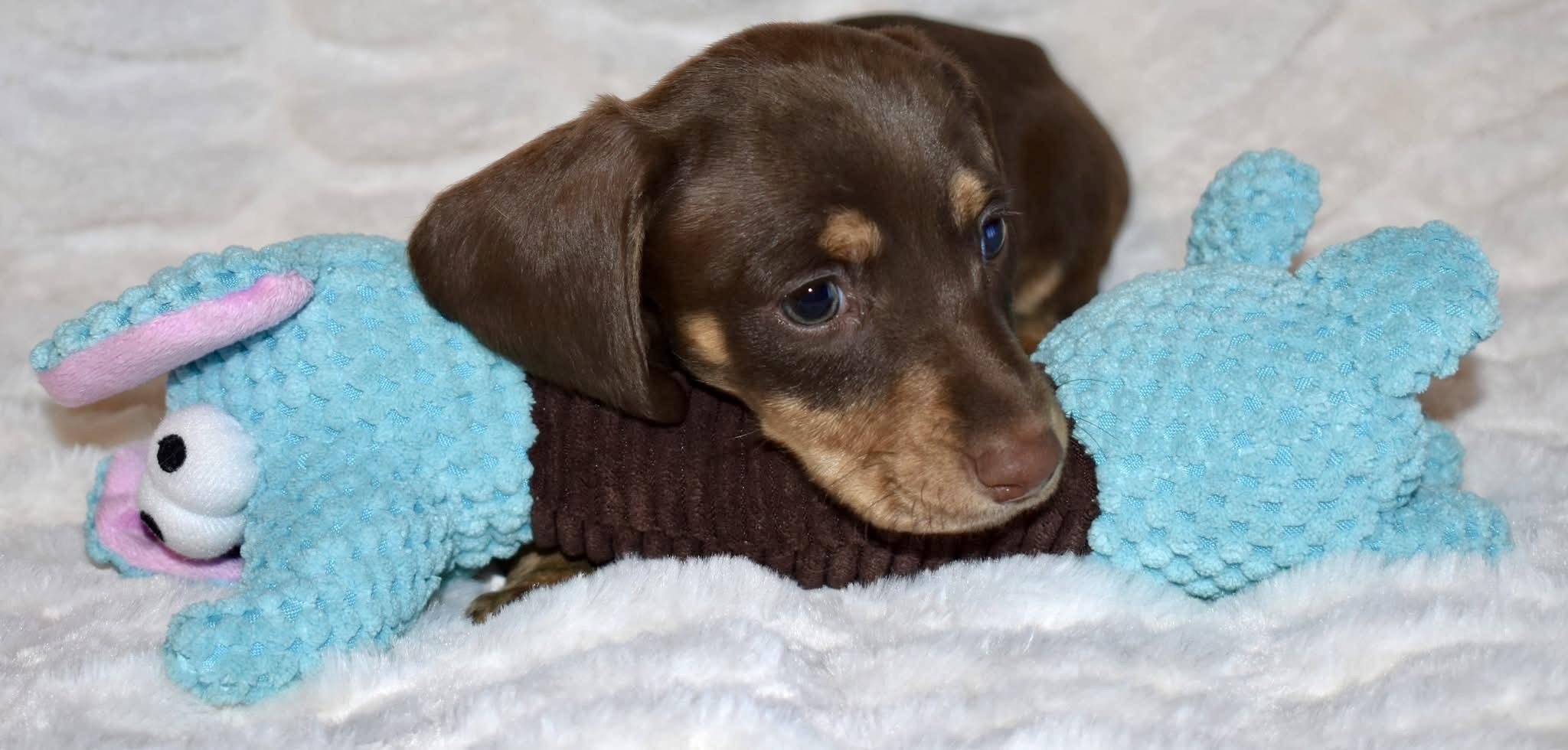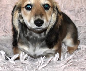 Tillo is our youngest homegrown boy. He is a very outgoing gentle little boy. He prefers snuggling with his human family and wrestling with all the dachshund girls.
