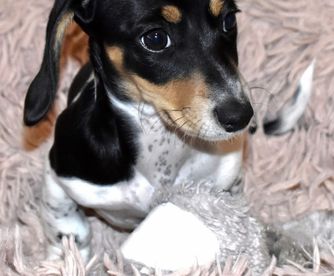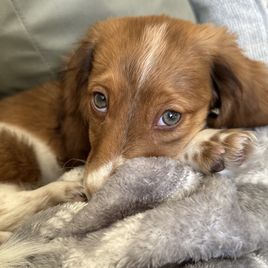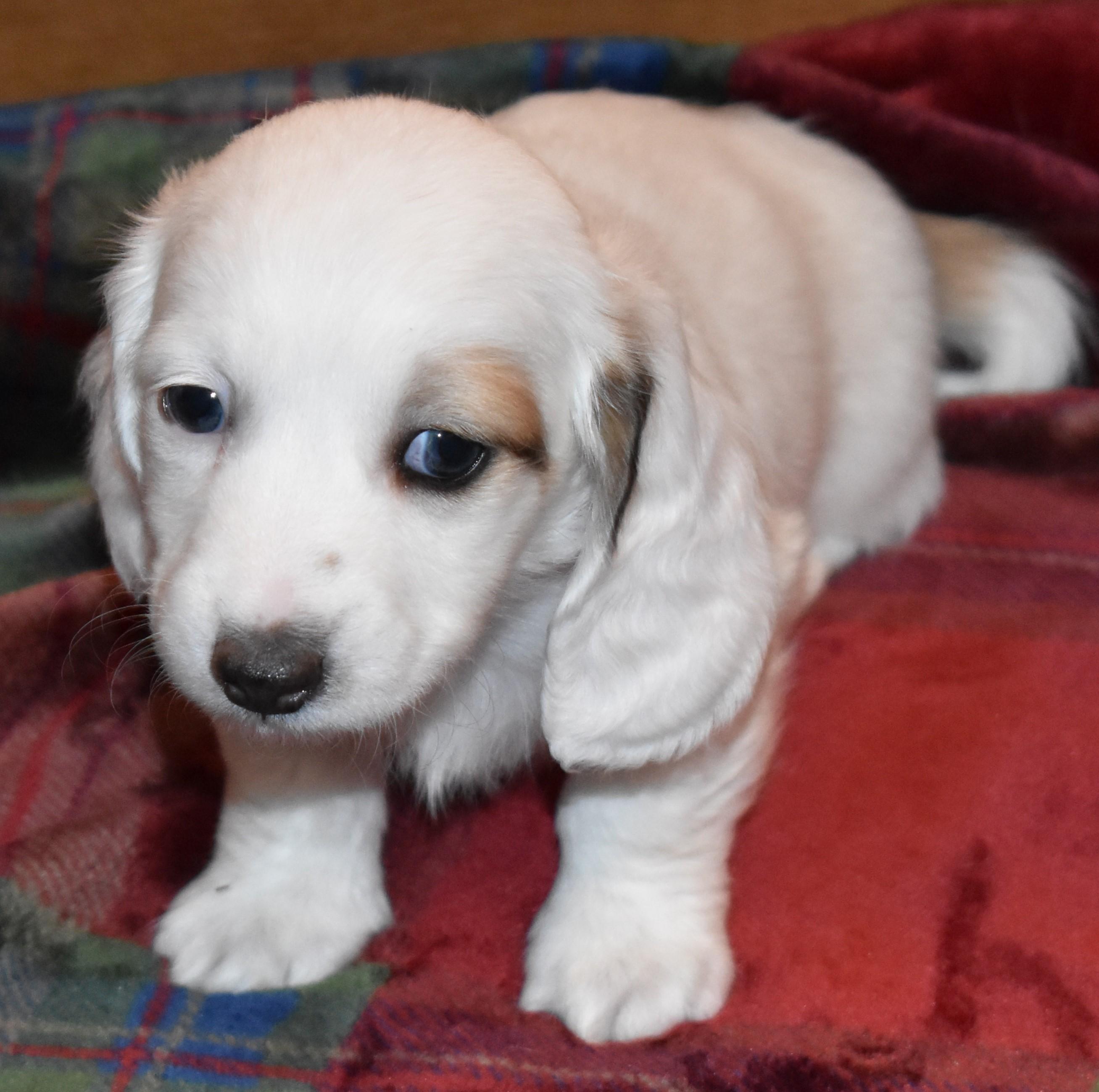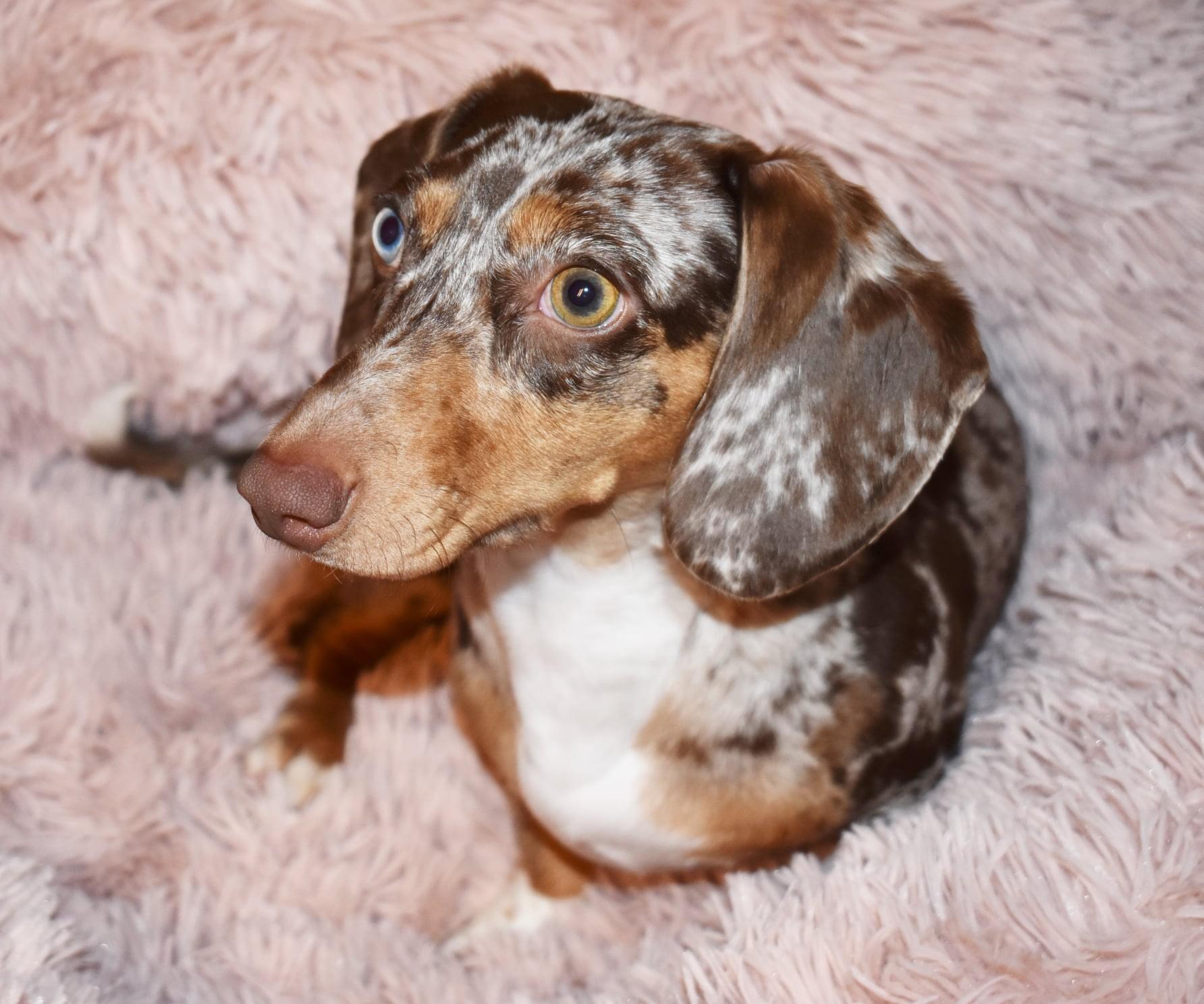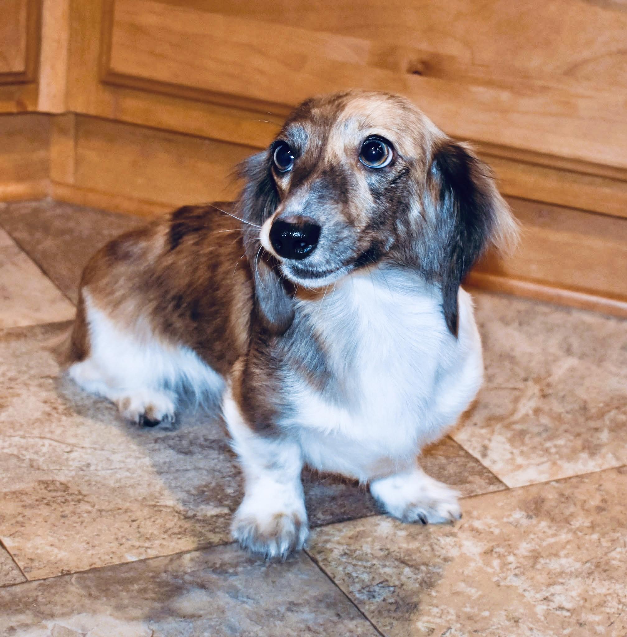 Tillo is our youngest homegrown boy. He is a very outgoing gentle little boy. He prefers snuggling with his human family and wrestling with all the dachshund girls.
