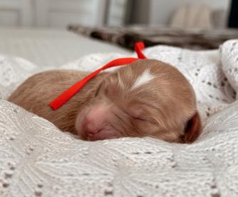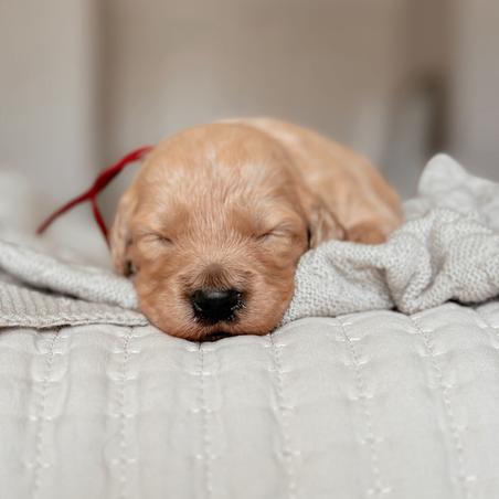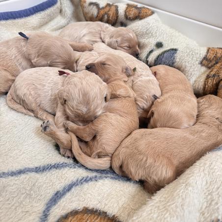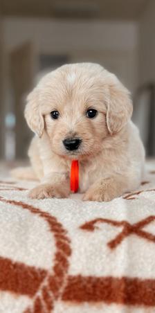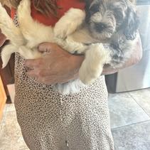 We found Krista on Good Dog and immediately felt comfortable with her. She was very responsive and always answered all of our questions quickly. Krista was helpful in choosing the perfect match for us, we had originally planned on purchasing a different puppy but through conversations about specific characteristics and size, she helped steer us to the perfect pup! We are thrilled with our sweet Scout! We were stunned to hear when we picked her up (at 8wks of age) that she sleeps through the night without any potty accidents, and we found that to be true! Scout is training well, seems intelligent and is a healthy pup! Her first veterinary appointment with us was very positive. Krista loves her pups and it is obvious when you see and hold those sweet babies in your arms. On pick up day, Scout was beautifully bathed and seemed ready to meet new people. There was no fear, she adapted to us quickly. Scout loves getting wet, so bathing is not an issue! ☺️ If you’re thinking of bringing a new love into your life, I would highly recommend speaking with Krista. Her knowledge of the doodle breed seems to be spot on and you couldn’t find a more loving human first momma for your puppy!