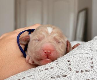 I cannot say enough wonderful things about Krista and her husband. From the very beginning, they showed kindness, openness, and genuine care throughout the entire process of adopting my sweet pup, Dusty (formerly known as Buck). They kept in touch and sent me updates and pictures of Dusty during his first eight weeks of life, which made me feel connected to him even before I brought him home. Their communication was clear, prompt, and thoughtful, which made the entire experience smooth and stress-free. What stood out most was their willingness to go the extra mile by offering to drive and meet me halfway when it came time to bring Dusty home. That gesture was a reflection of how considerate they are and how much they want their pups to go to good homes. Every interaction with Krista and her husband was filled with warmth, honesty, and care, and it was clear that they truly wanted the best for Dusty. Dusty has adjusted so well to his new home. He did wonderfully at the vet, is not afraid of sounds, and is playful, curious, and always wants to be part of the mix. All of this speaks to the positive exposure and loving care Krista and her husband gave him as a puppy. I would highly recommend Krista and her husband to anyone looking to adopt from people who genuinely care and approach the process with love and integrity.