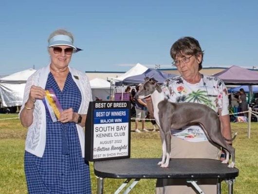 Flo is a female Italian Greyhound. Carefully selected as a great representative of her breed, Gail decided to make her part of their program. Gail has passed Good Dog’s screening process, which involved a review of their breeding practices, environment, and the mental and physical health of their dogs.
