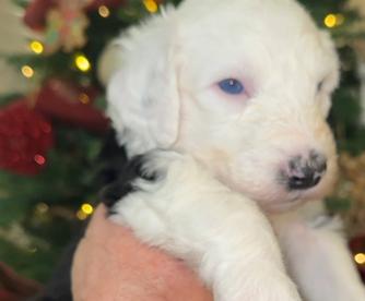 “Contact breeder for pricing. Old English Sheepdog natural tails, docked tails upon request. Sheepadoodles start $3000 black and white. Merle, Tri color, and those with blue eyes prices 3500- 4500, it will vary. Bernedoodle, minis, standards, traditional tri coloring and Merle. Blue eyes common. 3000-4500 This price includes first set of shots, a puppy pack, and 30 days of free pet insurance. We dock tails at 2-3 days old on Old English Sheepdogs unless requested other wise. All deposits are non-refundable but may be moved to another litter up to 1 time at breeders discretion. Puppies are picked out in order of deposit and matched to families on their temperaments and family dynamics. 🐶 About Our $500 Deposit We get this question often, so here’s a quick explanation! ❤️ When you place a $500 deposit, it goes toward reserving your spot for one of our puppies. This deposit is nonrefundable, even if you decide to purchase from another breeder or change your mind later. We do this because once a spot is reserved, we start planning your match and turn away other interested families. Each reservation affects how we manage our litters, our waitlist, and the care and time we dedicate to each family and puppy. Your deposit shows a serious commitment and helps us continue to provide healthy, happy, and well-socialized puppies to loving homes. 🐾 Thank you for understanding and supporting our program — it truly means the world to us! 💕.”