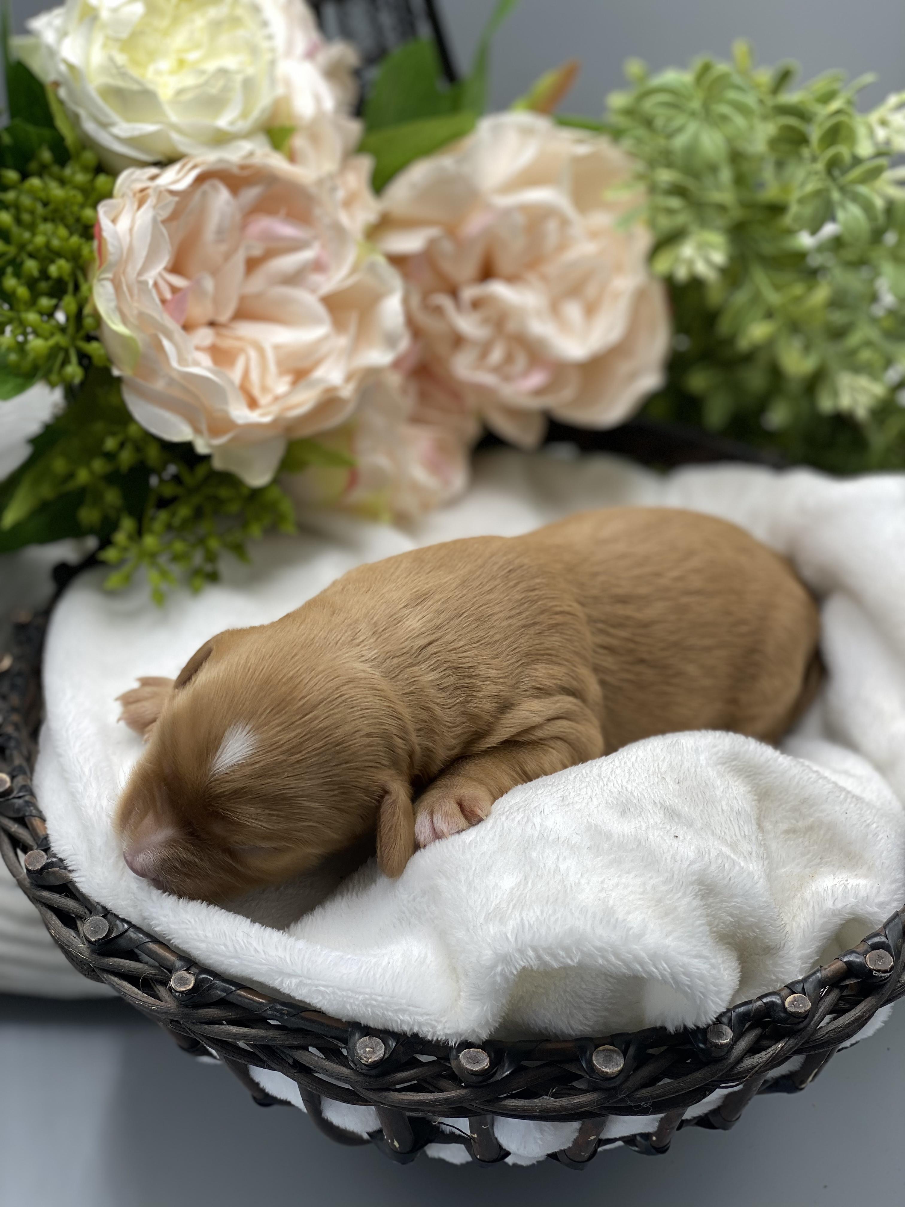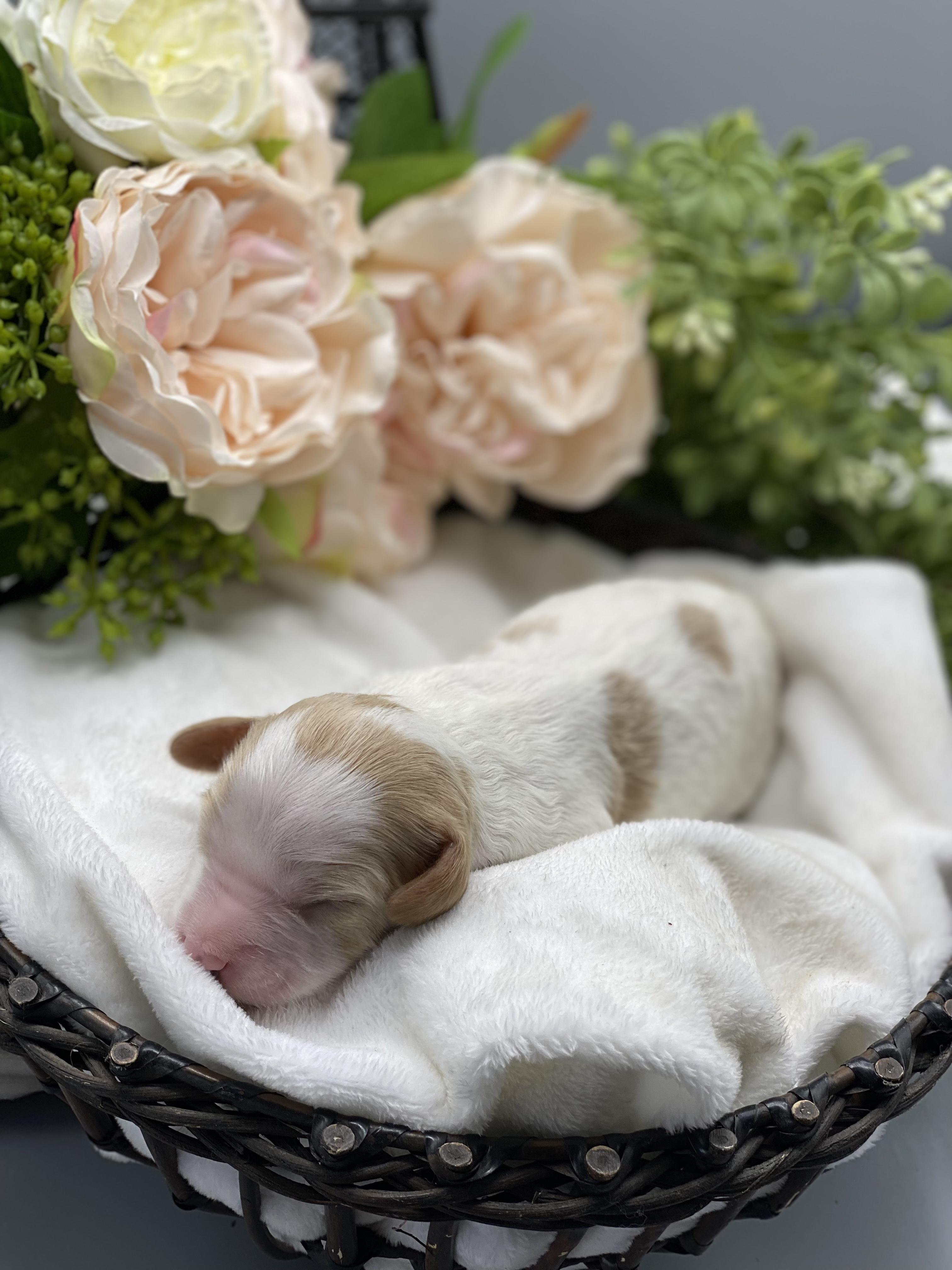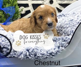 Our Cavapoo puppies include blenheim and red. Poodle puppies include red and parti. Goldendoodle puppies include apricot, red, and parti. Colors will vary depending on the parent dogs.